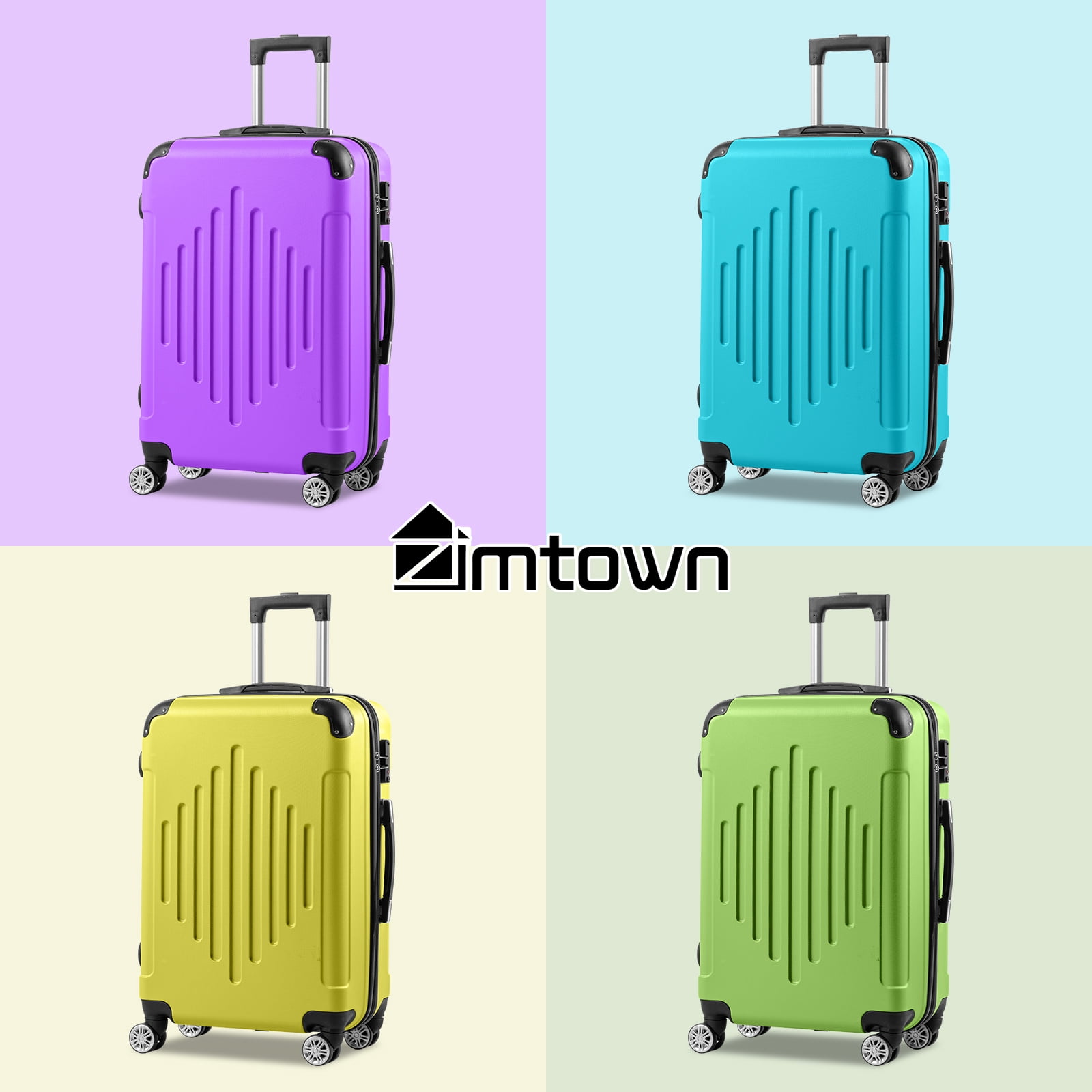 Features: Top Quality Luggage Sets: Made of brand new extra-thick ABS materials for hardshell, which make the luggage more durable, lighter and impact-resistant. Features textured finish to prevent against scratches, keeping cases beautiful after a trip. 20in is best for carryon, 24in & 28in expands 15% for more Spaces. Silent & Smooth Multi-directional Spinner Wheels: Benefit from brand new soft TPU and lubricating balls inside wheels, luggage moves very silent and smoothly with 360° rotate double wheels. Luggage passed 100% perfect drop test. Luggage also passed the walking test ( A professional luggage quality test: Luggage can loads 15kg and walks 40km at a speed of 10km/h ). Best choice for long-term travels and business trips. Adjustable & sturdy ergonomic aluminum 3-step telescoping handle allow you to maneuver in tight spaces and provide effortless movement. Smooth ups and downs for more comfortable carrying. Side mounted TSA lock which allows only TSA agents to inspect your bags without damaging the lock when traveling. Zippers are not easy to be pierced by sharp tools, such as pens, that protects your stuffs in luggage and privacy more better. Full-zip interior divider and cross straps for increased packing organization. Handsome slider in square, full-capacity design and full-zip interior divider with organizational pockets. Small pouch between hardshell can store toothbrush,wallet,makeups,etc. 100% satisfactions provided by Zimtown luggage. Feel free to contact us for any issues in purchasing. Specifications: General Informations 1. Material: ABS 2. Color: Purple/Green/Pink/Blue 3. Caster Diameter: 1.97″ / 5cm 4. Overall Trolley Case with Handle and Casters Height: 40.16″ / 102cm 5. Carry Handle Size: (8.46 x 0.98)” / (21.5 x 2.5)cm (L x H) 20 inch Case 1. Dimensions: (22.44 x 14.57 x 8.27)” / (57 x 37 x 21)cm (L x W x H) 2. Handle Stretched Length: 20.47″ / 52cm 3. Weight: 5.84 lbs / 2.65 kg 24 inch Case 1. Dimensions: (26.37 x 16.93 x 9.06)” / (67 x 43 x 23)cm (L x W x H) 2. Handle Stretched Length: 16.93″ / 43cm 3. Weight: 7.03 lbs / 3.19 kg 28 inch Case 1. Dimensions: (30.7 x 19.29 x 11)” / (78 x 49 x 28)cm (L x W x H) 2. Handle Stretched Length: 13″ / 33cm 3. Weight: 8.02 lbs / 4.02 kg Package Includes: 1 x 20 24 28 inch Trolley Case
