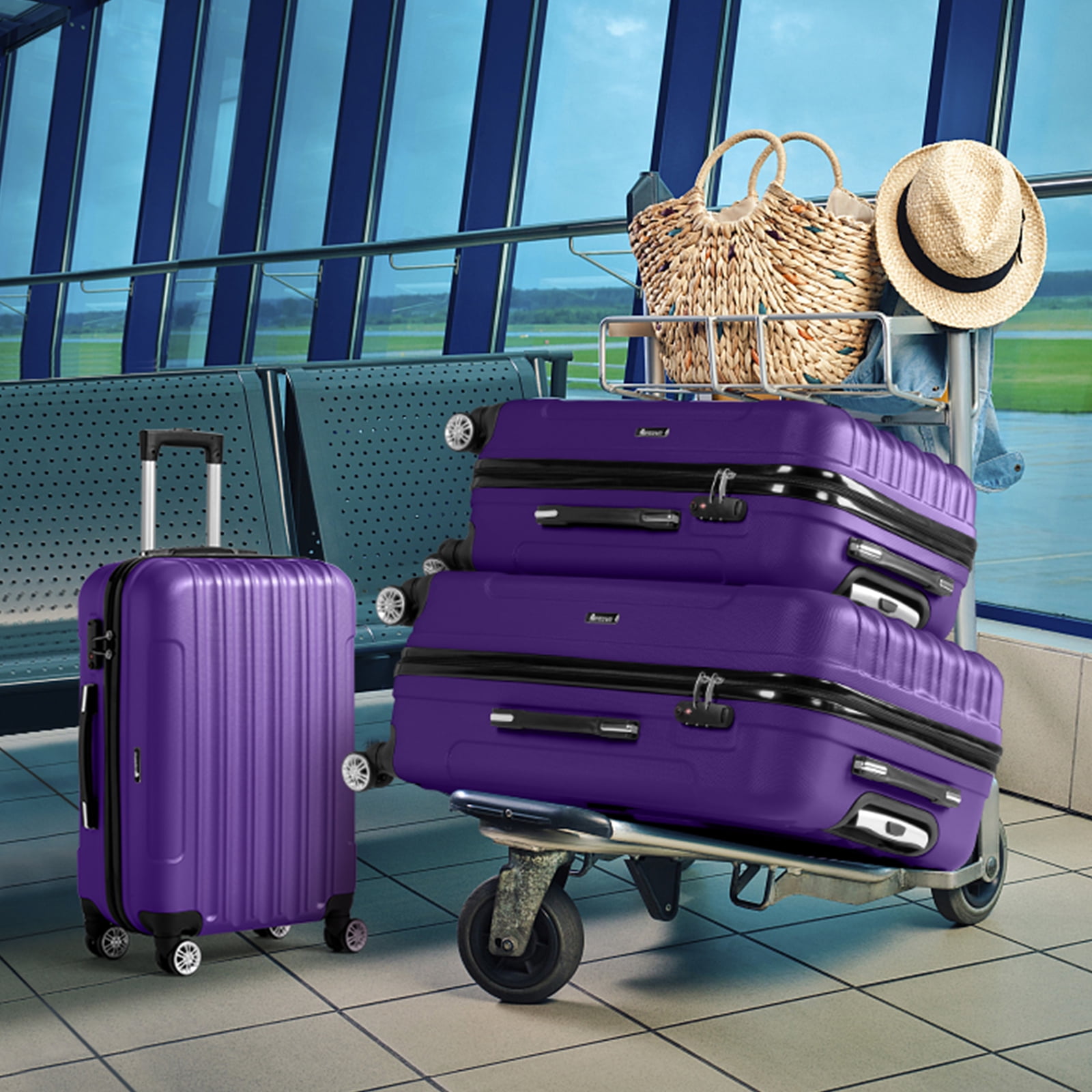 Zimtown 3 Piece Nested Spinner Suitcase Luggage Set With TSA Lock Purple