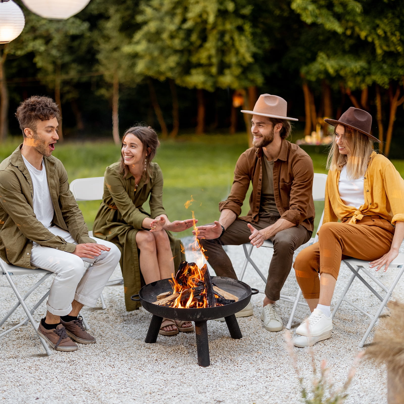 Folded, it will not take up much space With 6pcs folding chairs included Humanized treatment, comfortable to sit Folding, stacking, and locking upright design helps make storage of these chairs almost effortless