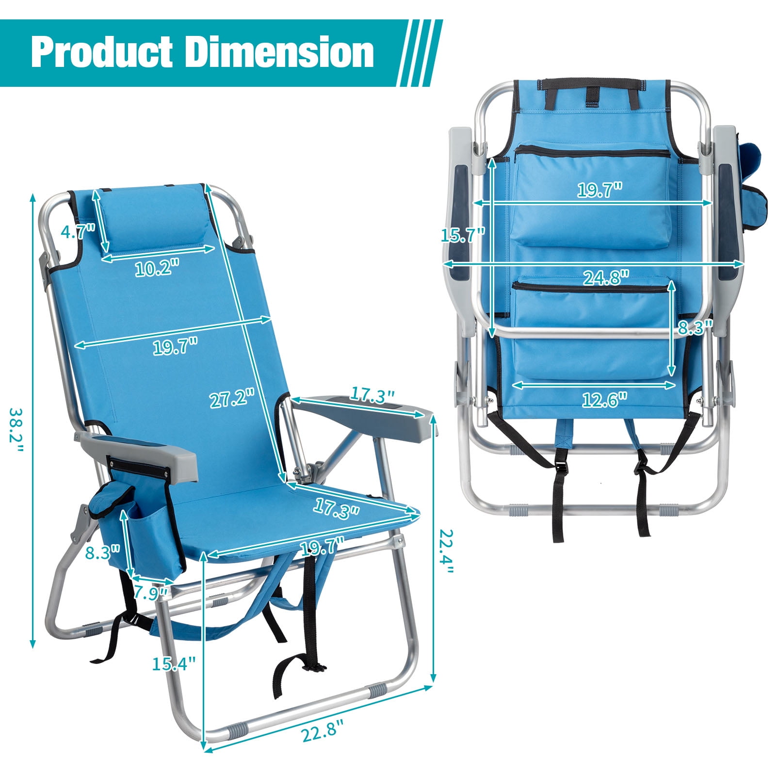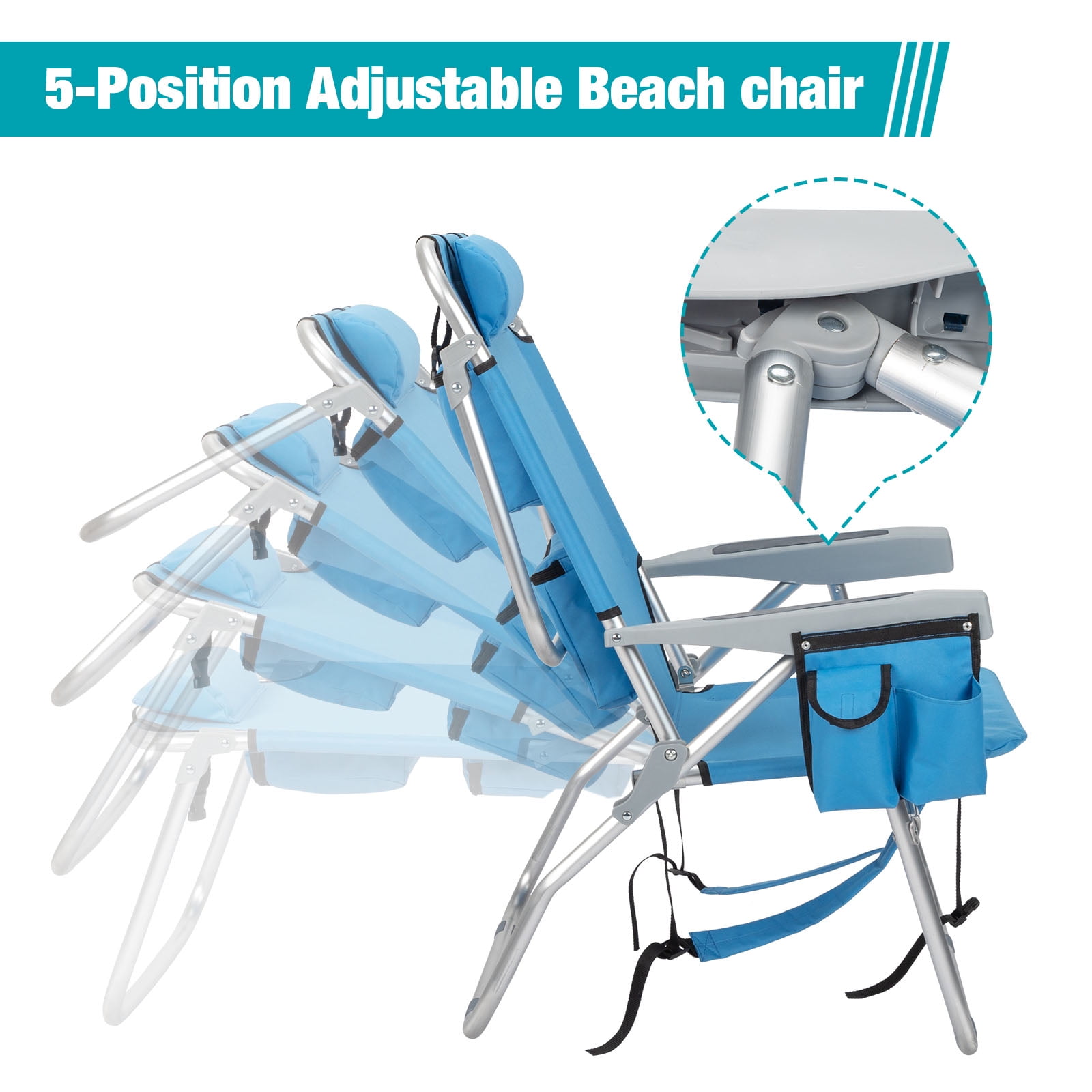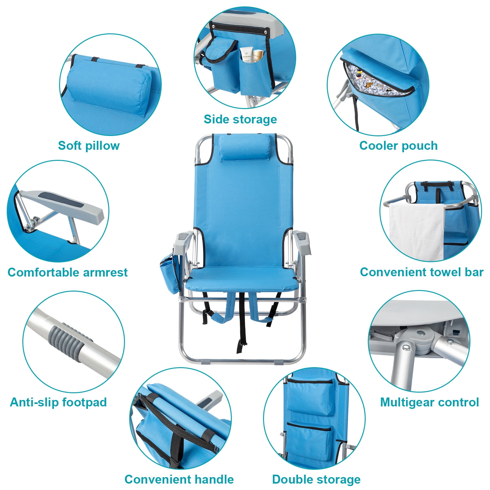 Features: Muti-Used: Ideal for hiking, hunting, camping, backpacking, the beach and more. Comfortable softouch non-slip handle reduces hand stress, easy on the joints, and perfect for long sessions in the garden. Max weight capacity: 220 lbs. Convinient & Easy to Carry: Can folds into a backpack so you can carry it with ease along with any other items you may have. Carries easily on your back with adjustable padded shoulder straps. The backpack pouch may carry your blankets, hand-held cameras, water bottles, game boards, etc. Foldable Design: When unfolded, the chair can recline into 4 different positions for ultimate comfort while soaking up the rays. Reclines smoothly to any angle from upright to almost horizontal. Made from steel frame and 600D polyester fabric. Folds flat for easy transport & storage. High Quality and Durable: Powder coated steel and 600D polyester fabric construction means this lounger can be left out for all the seasons. Satisfaction Guarantee: We sincerely provides high quality service for customers. If you have any question about our product, please contact our customer service and we will reply in 24 hours. Specifications: 1. Material: Aluminum And 600D Polyester Fabric 2. Color: Blue 3. Weight: 3.8Kg / 8.4 Lbs 4. Chair Overall Dimension: (63 x 70 x 99)cm/(24.8″ x 27.56″ x 38.98″)(L x W x H) 5. Folding Dimension: (60 x 92)cm / (24.8″X36.2″) 6. Weight Capacity: 220Lbs Packages Includes: 1 x Beach Chair