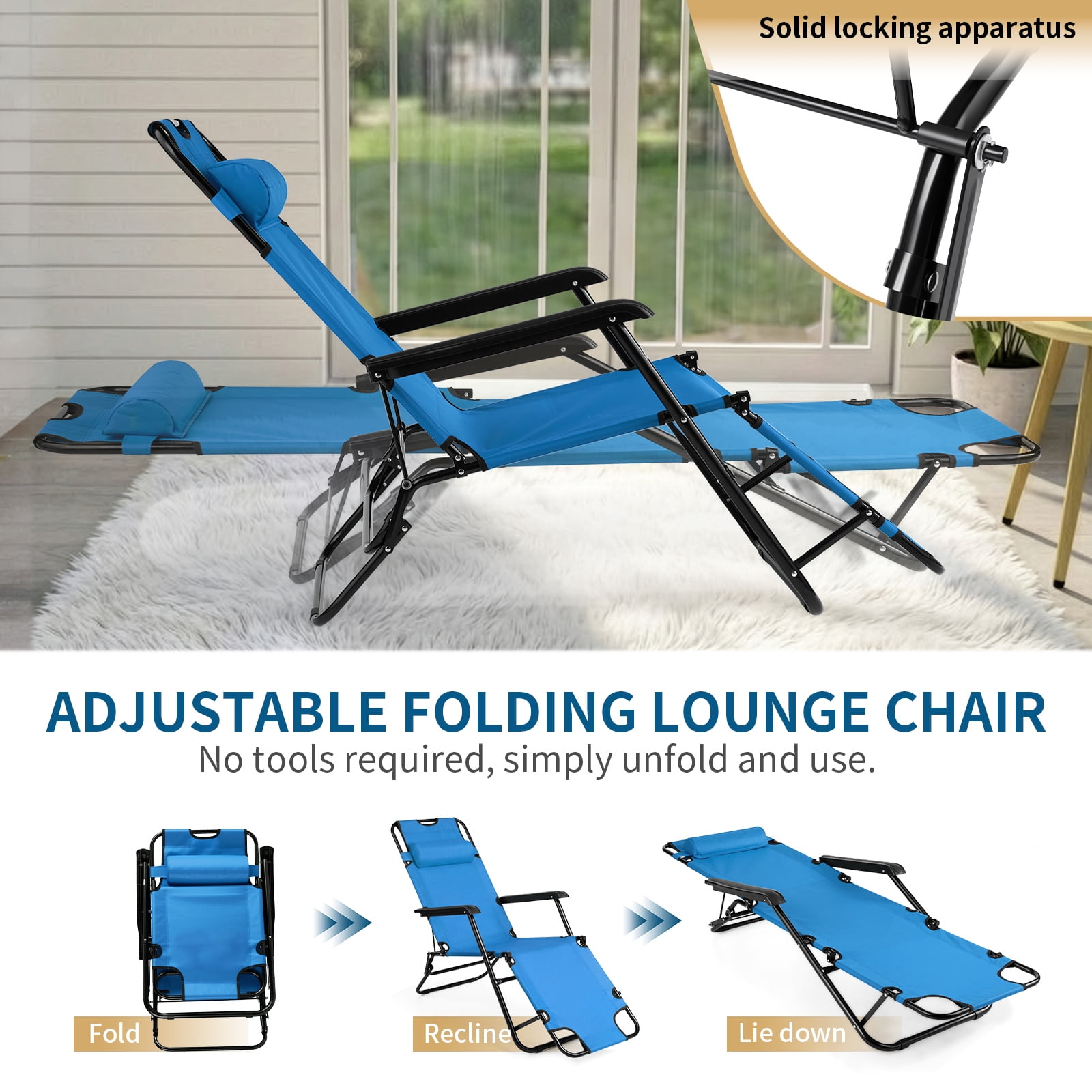 Zimtown Folding Chaise Lounge Chair Patio Outdoor Pool Beach Lawn Recliner Reclining Seat, Sun Chair for Outdoor, Blue
