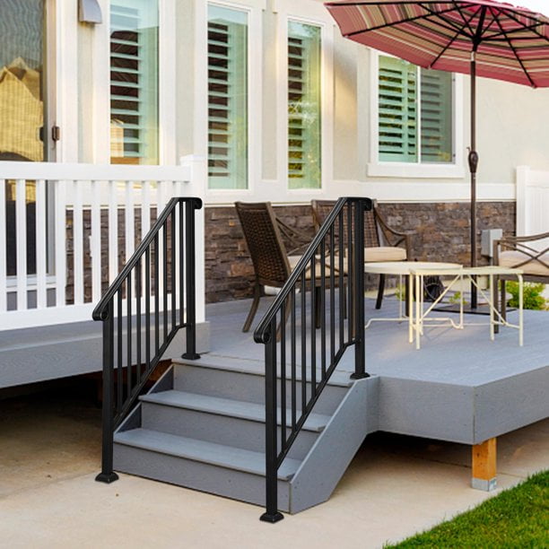 Introductions: The Zimtown Handrails for Outside Steps Handrails for Stairs Fits 1-4 Step Wrought Iron Picket Handrail Black is suitable for garden steps. The steps to enter your house are more beautiful. The flexible design of 3or4 steps allows you to choose freely. The whole shape is simple and smooth, giving you a more experience. The design with radian gives you a safer experience. Features: 1.This is one Picket #1 Handrail for 3 or 4 steps. 2.This handrail is constructed with real wrought iron, not aluminum. It is more strong and reliable and will not fail or bend like aluminum. Also, stainless steel post mounts will not rust or flex. 3.Adopted powder coating technology, the handrail picket is designed to be matte black. It is rustproof for durability and easy to clean. 4.All the connections are strongly welded and perfectly connected. The iron picket and curved design is beautiful and stylish 5.The handrail includes all necessary assembly and installation hardware. 6.Suitable for gardens, residential buildings, commercial office buildings, hotels, etc. Specifications: 1.Model: 3or4 steps 2.Color: Matte black 3.Material: Real Iron Metal 4.Style: Iron Picket Package Includes: 1 x Handrail Powder Coating Black 1 x Installation Kit Note: If you encounter difficulties with installation, feel free to contact customer service for assistance or to request an installation guide video.