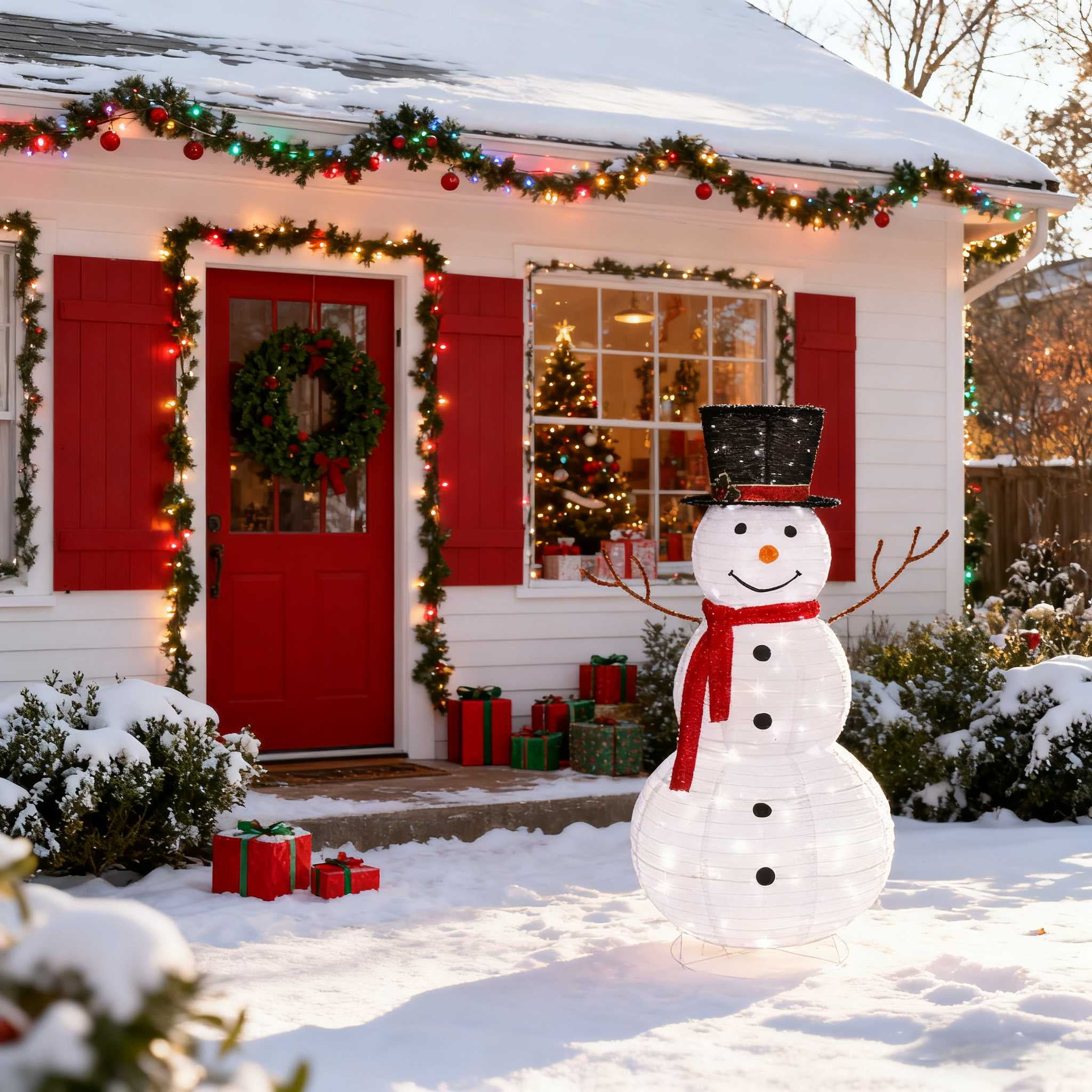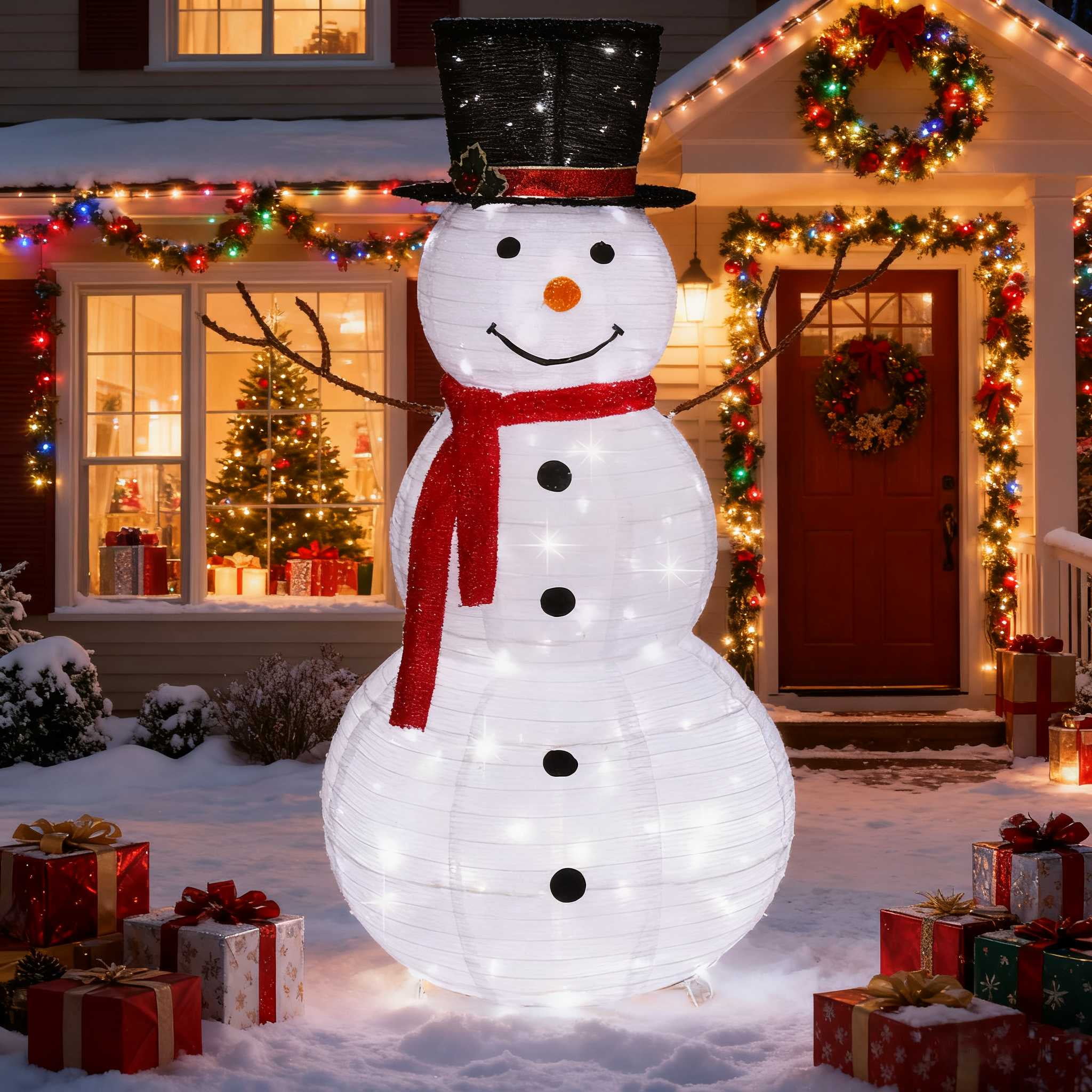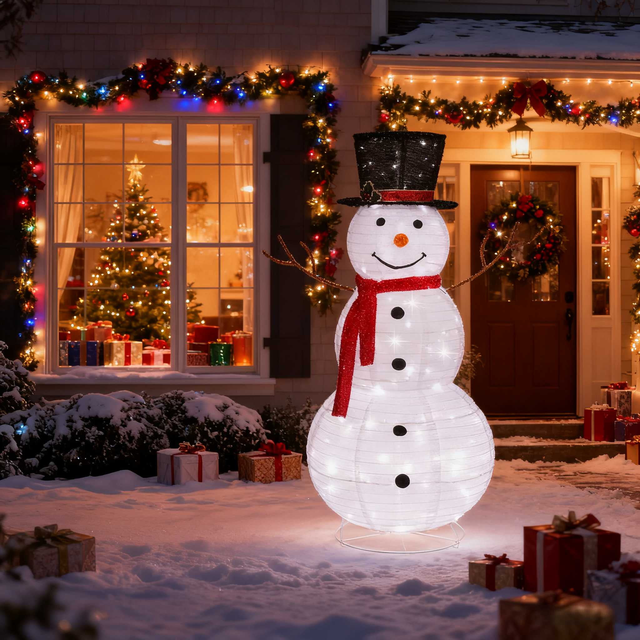 Introductions: There’s no better way to decorate for the winter season, than placing a happy snowman in your decor. This large snowman offers the perfect amount of light for the holidays. This charming snowman is designed to bring joy and festive spirit to both indoor and outdoor spaces. Crafted with high-quality materials, it is built to withstand any weather conditions, ensuring its durability for years to come. Featuring 180 LED lights, including 20 twinkling lights, this snowman creates a mesmerizing glow that adds a magical touch to your surroundings. The lights are strategically placed to highlight the snowman’s features, making is stand out among other decorations. Whether it’s placed in your lawn, yard, or indoor spaces, its bright and cheerful presence will effortlessly spread holiday cheer. Dressing up the snowman is easy, thanks to the included hat and scarf. These festive accessories enhance the snowman’s appearance, bringing a whimsical and playful feel to your Christmas decorations. You can customize the look by adding your own personal touch, making it unique and special to your own style. Its innovative pop-up design allows for quick and effortless installation. Within minutes, this snowman will come to life, ready to be admired by all. When the holiday season comes to an end, you can easily fold it up for compact storage until the next year, saving you time and space. Standing tall at 4ft in height, this snowman becomes the centerpiece of your holiday decor. Its impressive size dominates any space, capturing the attention of guests and passersby. Whether you’re hosting a winter party or simply want to spread holiday joy, this snowman is sure to make a grand statement. Specifications: 1. Material: Iron pipe, imitation branch hand, snow flannelette 2. Color: white 3. Weight: 3.5lbs 4. Dimensions: 24” × 24” × 47”