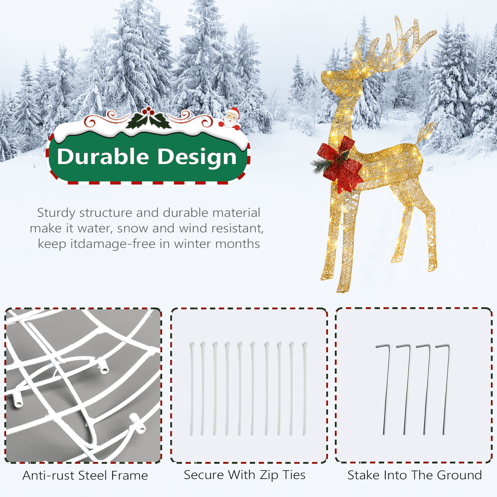 Zimtown Lighted Christmas Reindeer, 4FT Outdoor Yard Christmas Decorations with 90 LED Lights Indoor/Outdoor Festive Holiday Decoration- Gold