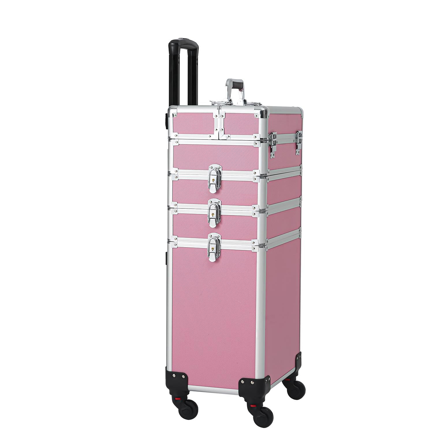 4-in-1 Draw-bar Style Leopard Pattern Aluminum Rolling Makeup Case Solid structure, good performance and high quality Unique draw-bar style, easy to use Interchangeable makeup case, convenient to use