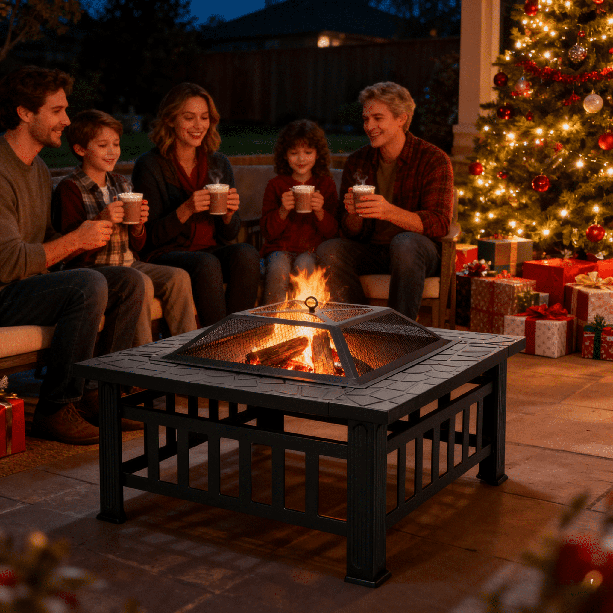 Multifunctional Fire Pit: This 32 inch square firepit has modern feature design, which can warm and decorate your house, is suitable for patio, backyard, and poolside. You can use it as a fire pit, BBQ grill, outdoor ice bucket or just a large table. It has wide tabletop around fire place where you can place drinks and foods, make everything within reach. Safty in Use: This firepit features square design with four firm legs make it more stable, even on uneven ground. Equipped with a mesh spark lid to prevent sparks and ashes from flying everywhere, and the poker allows you to safely move the grill and burning wood. Easy to Install & Clean: This fire pit table is design to assemble easily, comes with step-by-step installation and all the tools, you can finish and enjoy it in a few minutes. The bottom of the brazier is provided with drain holes for easy draining water and cleaning. Durable Design: This fire pit is made of heavy duty steel frame, which is durable and solid. The firepit treated with high temperature coating, makes it rust resistant for long time outdoor using. What We Offer: Full set included: 32 inch firepit, square brazier, mesh park lid, log poker, fire grate, instruction guide, tools required. We provide friendly customer service, if you have any questions, please contact us freely.