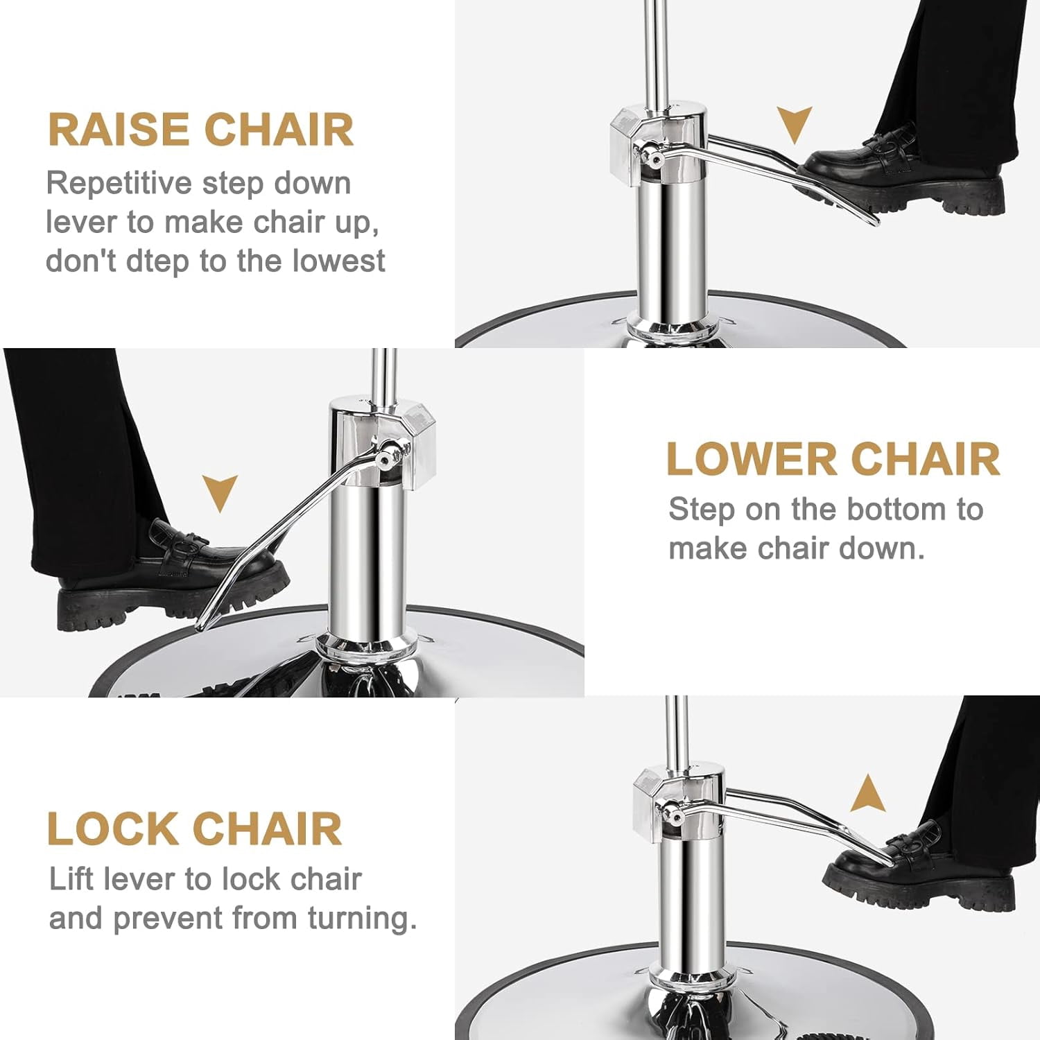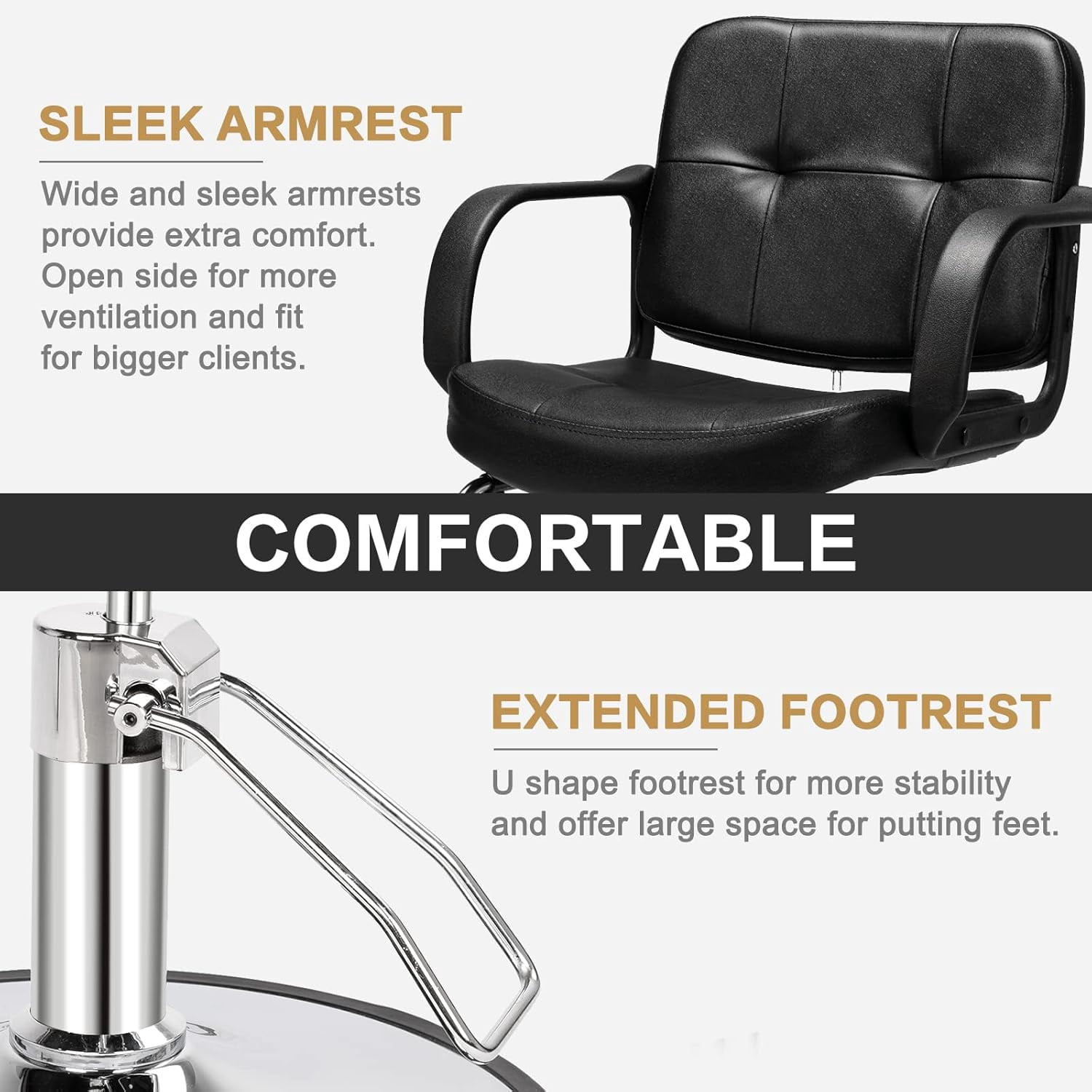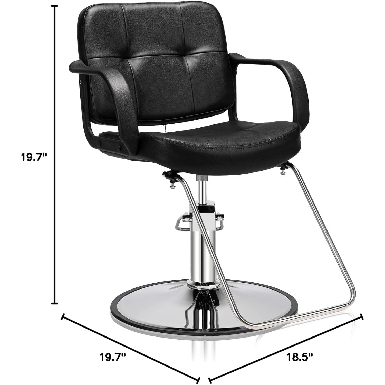 The Heavy Duty Barber Chair is built to last. It offers comfort as well as style every barber desires, suitable for use in barber shops. With a heavy-duty construction, it can bear a load up to 330 pounds. And it is easy to wipe clean. Heavy Duty and 330 pounds Weight Capacity This hydraulic barber chair is made of heavy duty steel frame, the material of the chair base is made of Premium chrome. This salon chair could loading 330 pounds capacity. Comfortable Surface The material of the surface of our salon styling chairs is made of PVC Leather, it touch soft and give you an ultimate comfortable experience. Small cell high density foam for extra comfort of your client 360 Degree Swivel This barber chair has 360 degree swivel function, which could make your work much convenient and flexible. Simple Assembly Our barber chair has straightforward illustrations and descriptions. Every screw and pin has its own code and easy to understand the assemble progress. Adjustable Height and Multifunctional Usage After this product was fully built, the height could be adjusted from seat to floor could adjustable from 20 inches to 25.6 inches. And it could be used at different barbershop and suit for different customers, children, adults or elders. Easy to Clean Modern stylish gray PU leather surface, which is smooth and easy to clean, whatever wet or dry wipe, the dirt won’t be very hard to remove. Non-Slip Foot Rest The foot rest is designed into non-slip style, it could prevent the customer to slip down to the floor. Specifications: 1. Color: Black 2. Load-bearing: 150kg 3. Weight: 705.47oz / 20000g 4. Material: Leather & Metal 5. Dimensions: (33.86 x 24.41 x 34.25)” / (86 x 62 x 87)cm (L x W x H) 6. Handrail Dimensions: (15.35 x 2.36 x 9.84)” / (39 x 6 x 25)cm (L x W x H) 7. Pedal Dimensions: (17.71 x 14.96)” / (45 x 38)cm (L x W) 8. Chassis Dimensions: (0.08 x 18.90)” / (0.2 x 48)cm (H x Dia.) 9. Handrail to Ground Height: 70cm(Min.),85cm(Max.) 10. Seat to Ground Height: 50cm(Min.),65cm(Max.) 11. Load-bearing: 150kg Package Includes: 1 x Woman Barber Chair