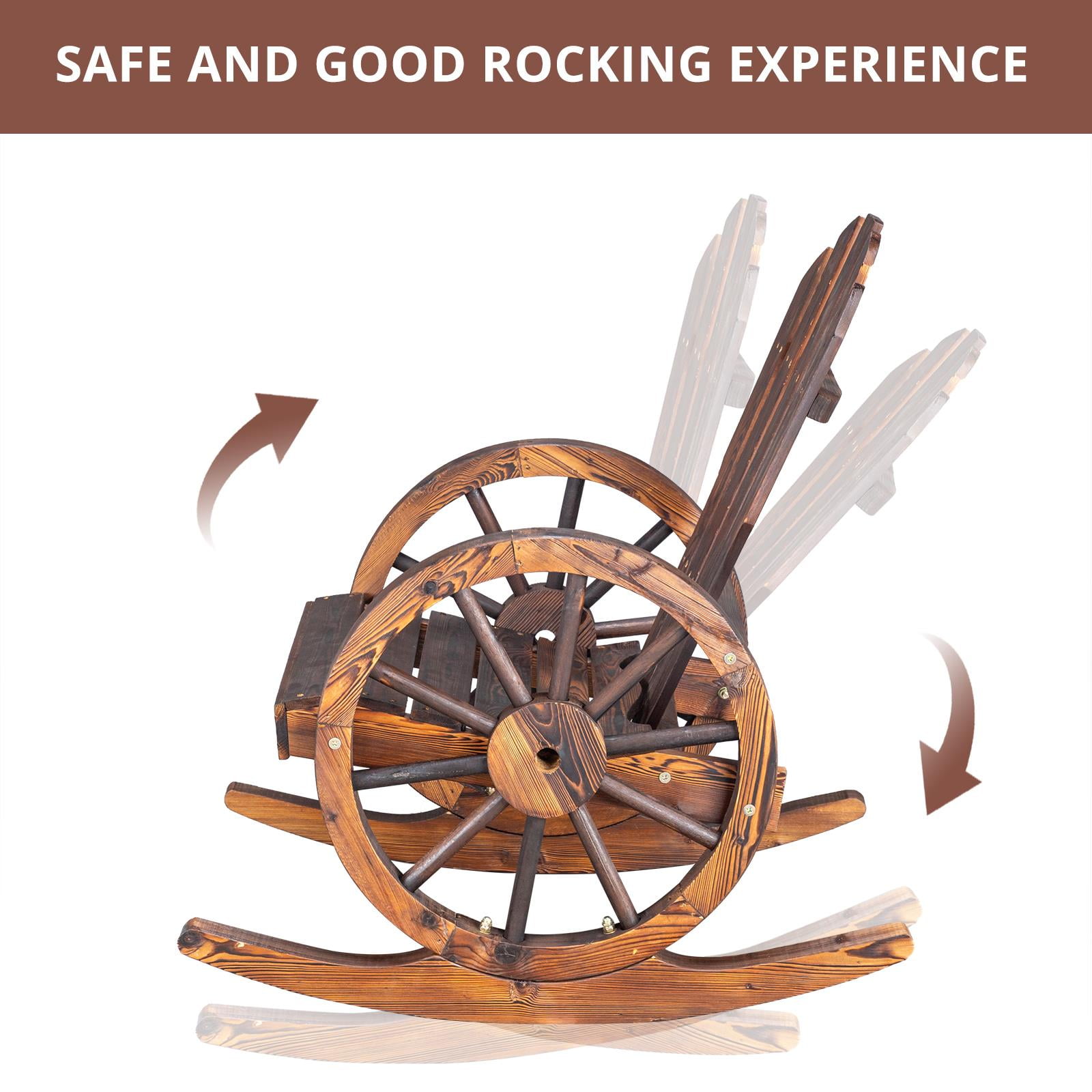 Feature: 【Style Update】Compared with the conventional rocking chairs on the market, this rocking chairs have unique wheel armrests. The classic style perfectly matches the terrace, porch or garden. 【High-quality Material】The wooden outdoor rocking chair is made of fir, which has unique toughness. The rocking chair is more durable and has a natural log fragrance, which has many benefits to the human body. 【Ergonomic Design】 The classic design of this outdoor garden-style chair can meet the comfort needs of people of all sizes. 【Easy to Assemble】This outdoor rock chair is easy and fast to assemble Specifications: 1. Length: 61.5cm / 24.21inch 2. Width: 89cm / 35.04inch 3. Height: 94cm / 37.01inch 4. Seat Depth: 46.5cm / 18.31inch 5. Seat Width: 51cm / 20.08 Inch 6. Height Of Back Panel: 68cm / 26.77inch 7. Backboard Width: 51cm / 20.081inch 8. Material: Fir, Solid Wood 9. Color: Carbonized Color 10. Load Bearing: 150kg / 330Lb 11. Style: Wooden Wheel Package Includes: 1 x Wood Rocking Chair