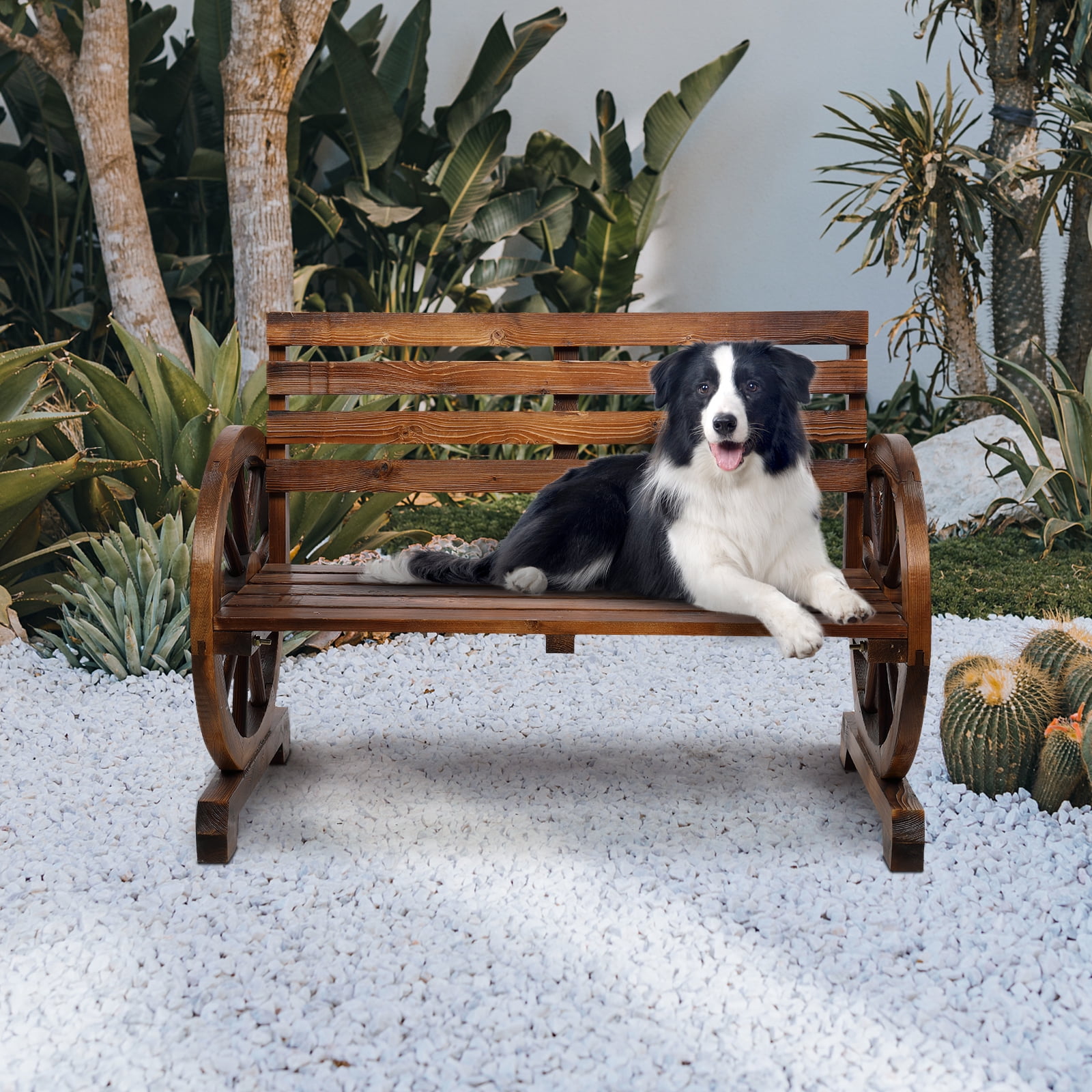 Zimtown Wooden Wagon Wheel Bench, 41″ 2-Person Slatted Seat, Outdoor Patio Furniture, 550lbs High Capacity, Weather Resistance, Wood Garden Bench