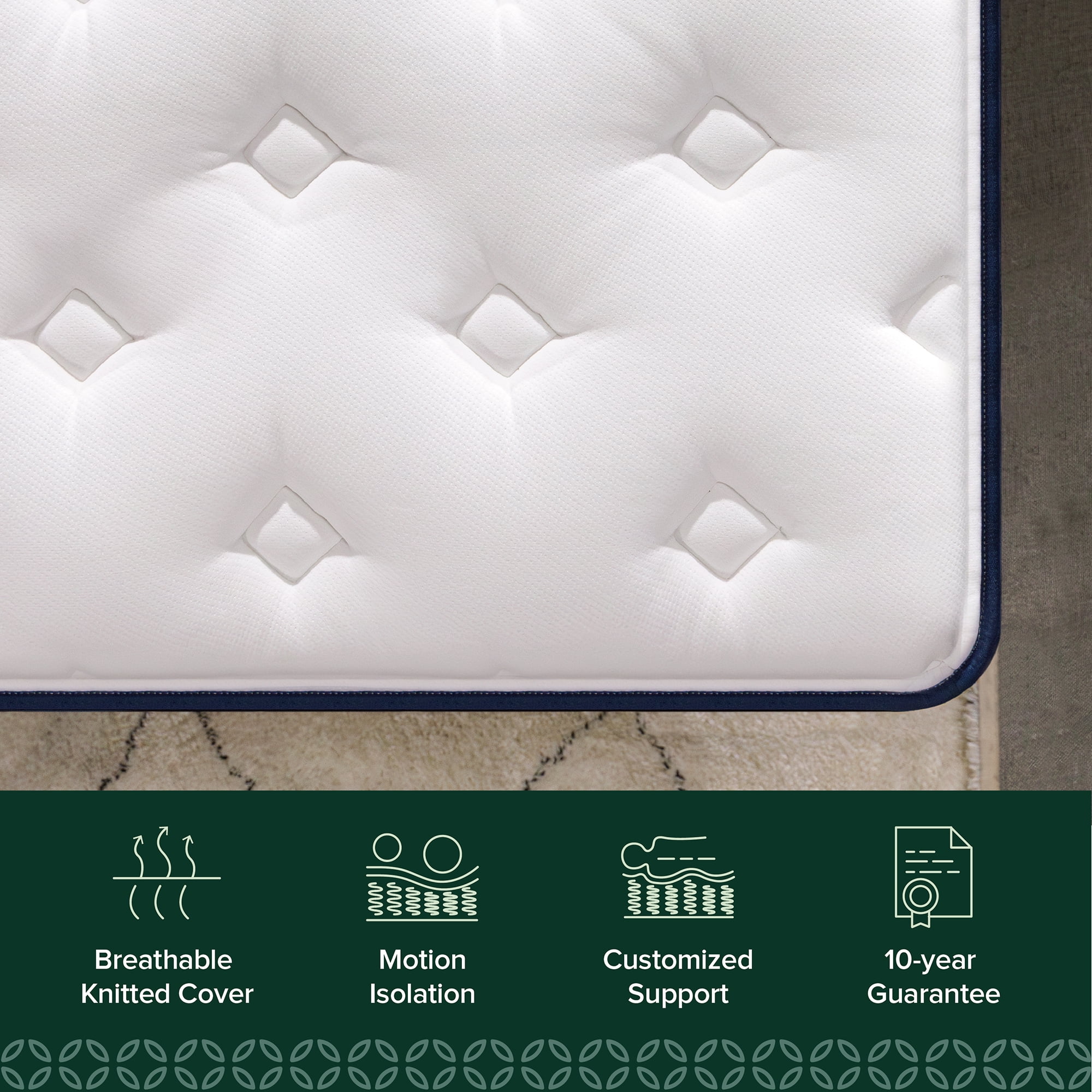 Zinus 10″ Pocket Coil Euro Top Hybrid Mattress, Queen