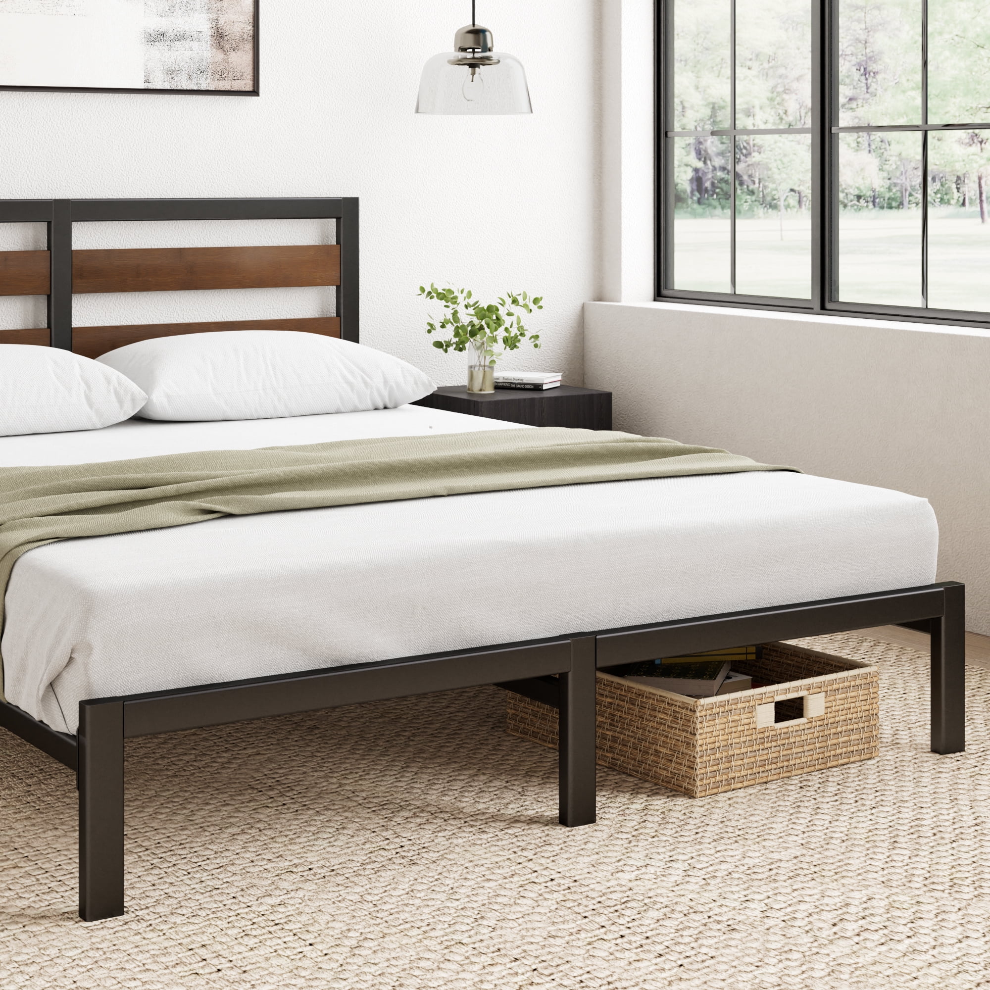 Zinus Metal and Bamboo Wood Platform Bed, Queen Sustainable bamboo headboard and footboard add a touch of minimalist elegance to your bedroom decor Durable steel construction ensures your bed frame will last a very long time The sturdy steel frame eliminates the need for a box spring Low profile design blends well with any contemporary aesthetic Sits on 9 legs, reinforcing stability, longevity, and mattress support Packaged in a compact box that’s easy to move into your bedroom All the parts, tools, and instructions needed for easy setup are included in the packaging 81 in x 60 in x 35.6 in WT-FBOBH5ZC-10Q Age Group: Adult, Universal.