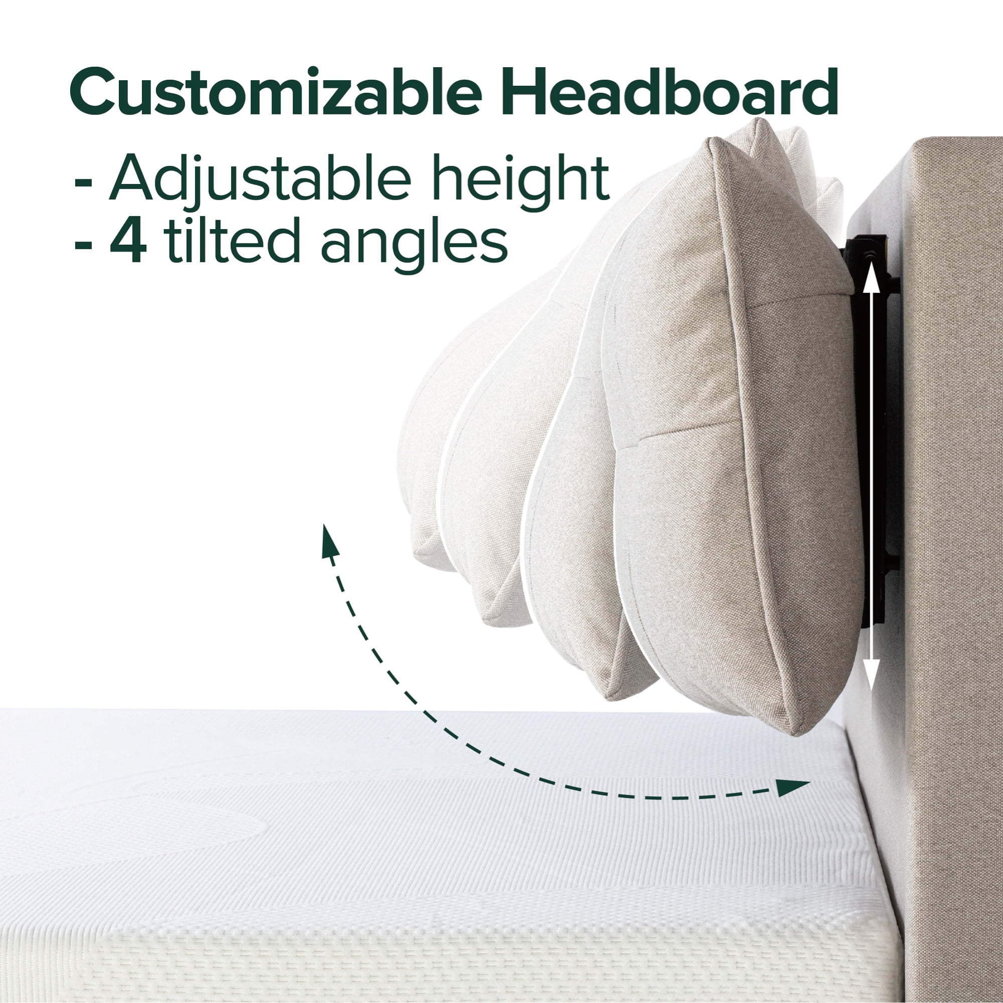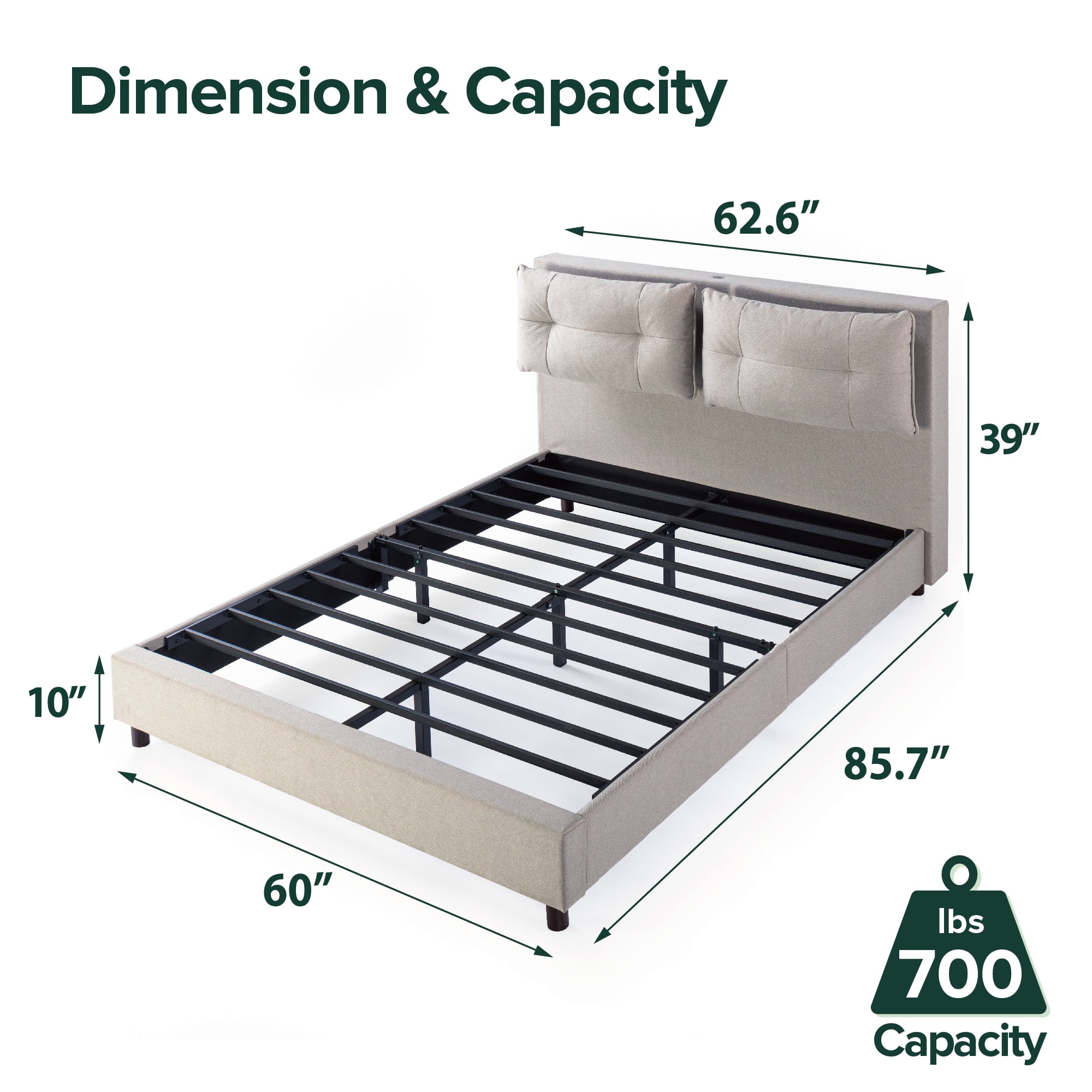 Zinus 39″ Avery Platform Bed with Reclining Headboard and USB Ports, Beige, Queen: Built for more than just sleep – We’ve made lounging effortless with this metal platform bed, featuring a cushioned, reclining headboard; tailor it for sitting up to eat, watching tv or working from bed – no extra pillows or back strain required Customize your comfort level – Comfortable headboard features thick foam padding and an easy-to-adjust reclining function with four different tilted positions; headboard cushion height can also be adjusted up or down to suit the height of your mattress Charged up – Two USB ports located on top of the headboard to keep electronic devices plugged in. No box spring needed – Durable steel slats support and solid steel frame extend the life of your latex, memory foam or spring mattress without the need for a box spring; all sizes can support up to 700 lbs Easy assembly – Everything you need is efficiently packed into one box and shipped straight to your door; all parts, tools and instructions are included for easy, two-person assembly in under an hour. Age Group: Adult, Universal. See our assortment of Zinus products