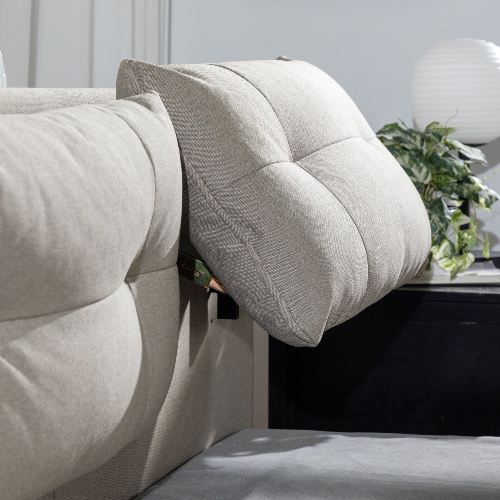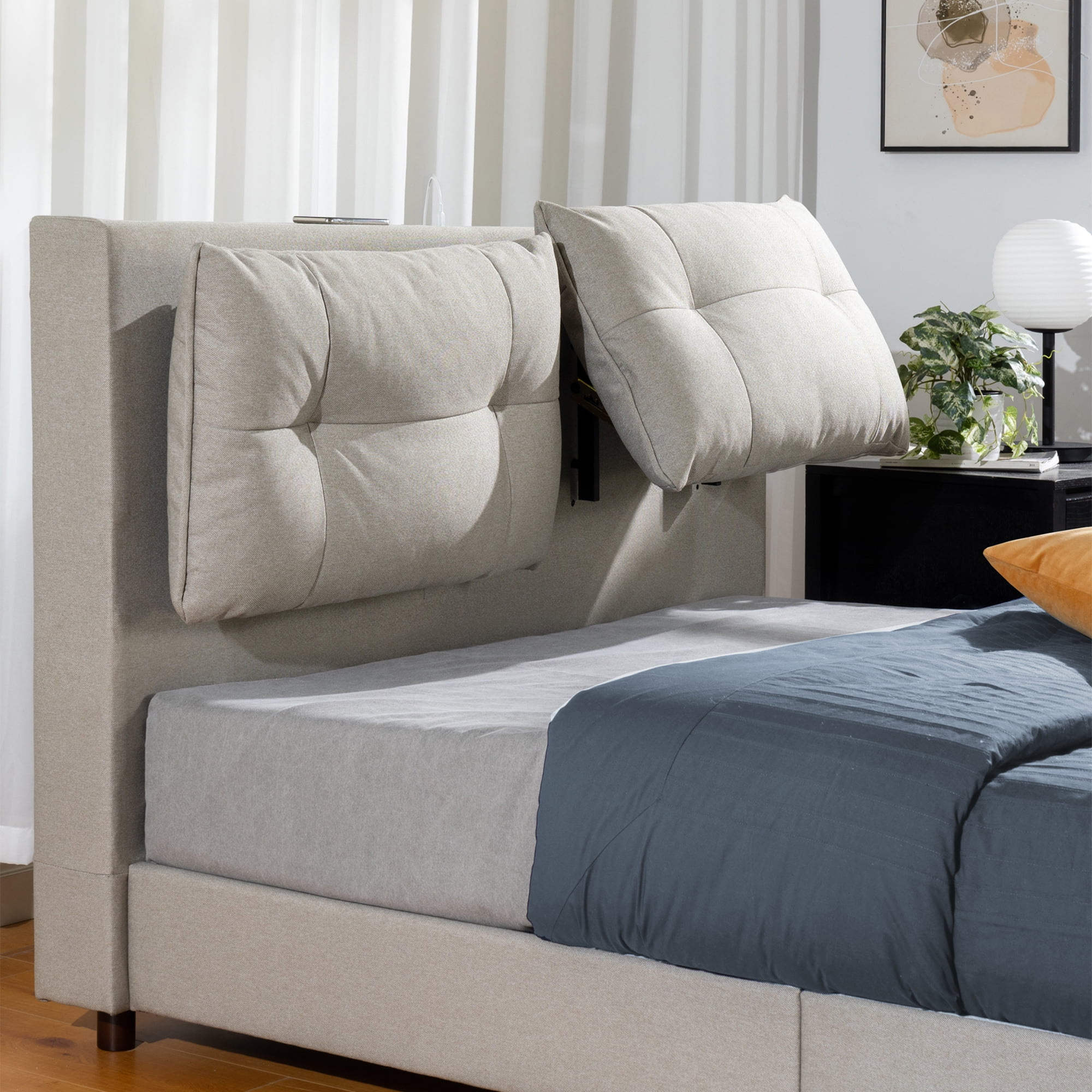 Zinus 39″ Avery Platform Bed Reclining Fabric Headboard and USB Ports, Beige, Queen