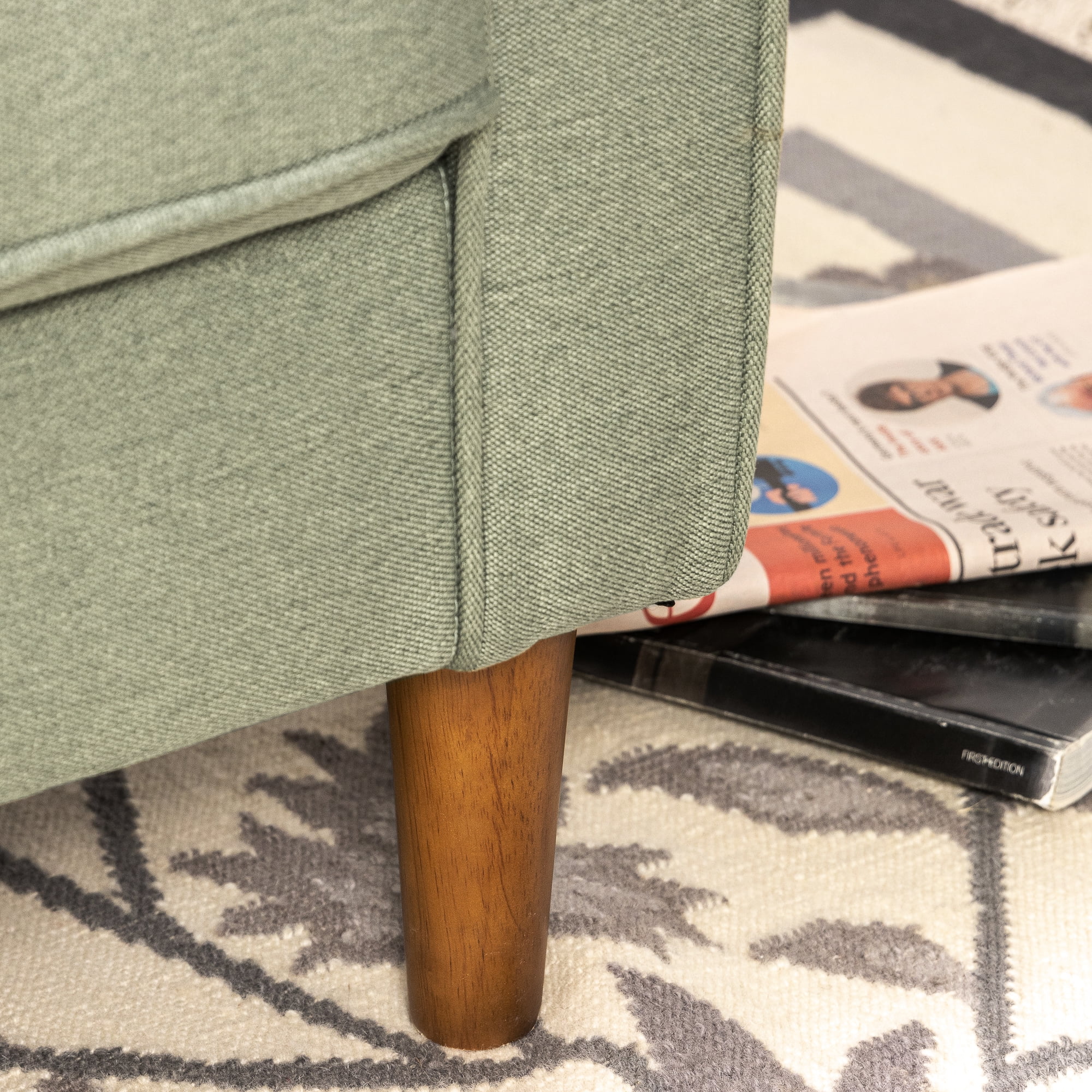 Zinus Lauren Indoor Loveseat, Pear Green A POP OF COLOR FOR YOUR SMALL SPACE – Don’t sacrifice style in your smaller rooms or modestly-sized apartment; this 53-inch sofa is made to be seen, with its pear green color and sophisticated wood tapered legs DURABLE DESIGN – A naturally-strong frame is wrapped in supportive foam cushioning and a durable, polyester fabric; seats a maximum weight capacity of 500 lbs Seat cushions are secured to the frame and are not detachable TOOL-FREE ASSEMBLY – All parts and instructions are smartly packed into one compact box for simple assembly that takes less than 20 minutes EASY CARE – Affixed cushions are easily cleaned with a clean, damp cloth and mild detergent 52.4″ x 30.7″ x 33.5″ Worry-free 1 year limited warranty included See our assortment of Zinus products