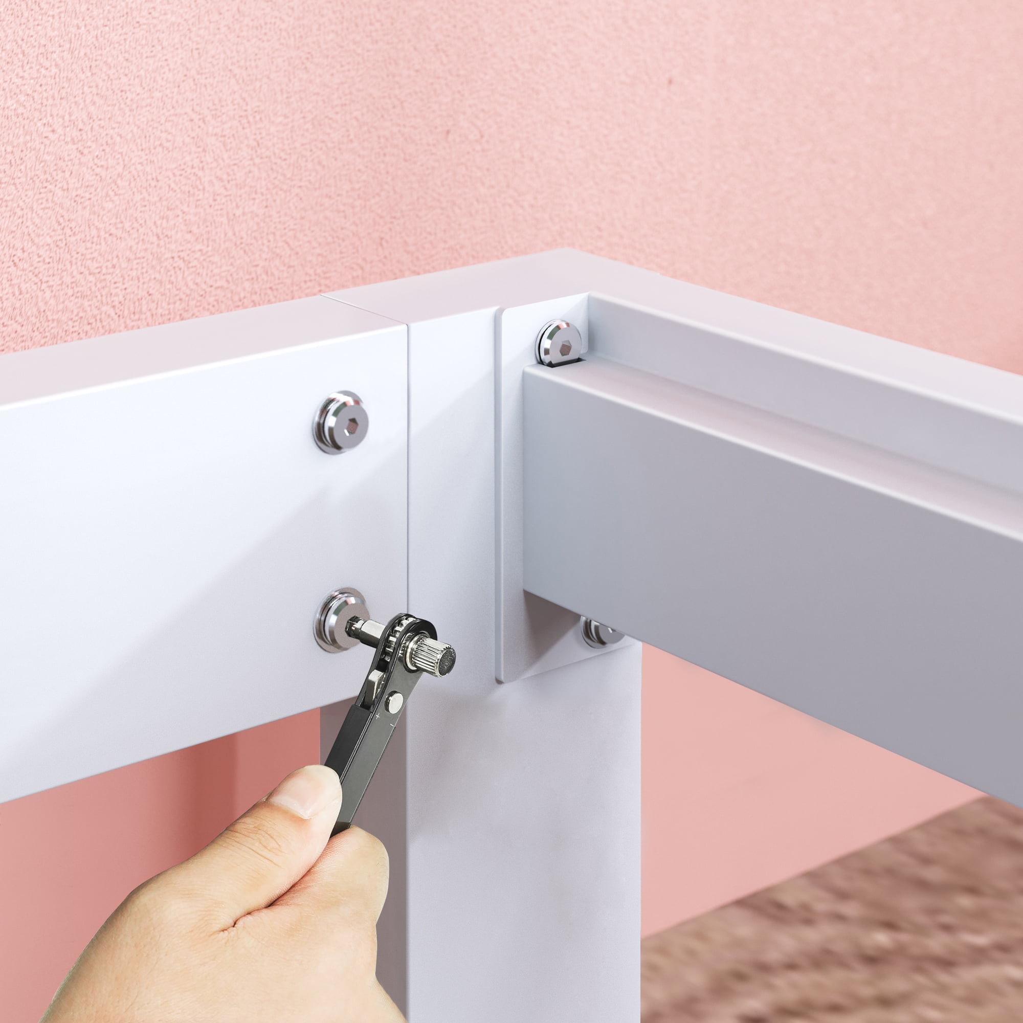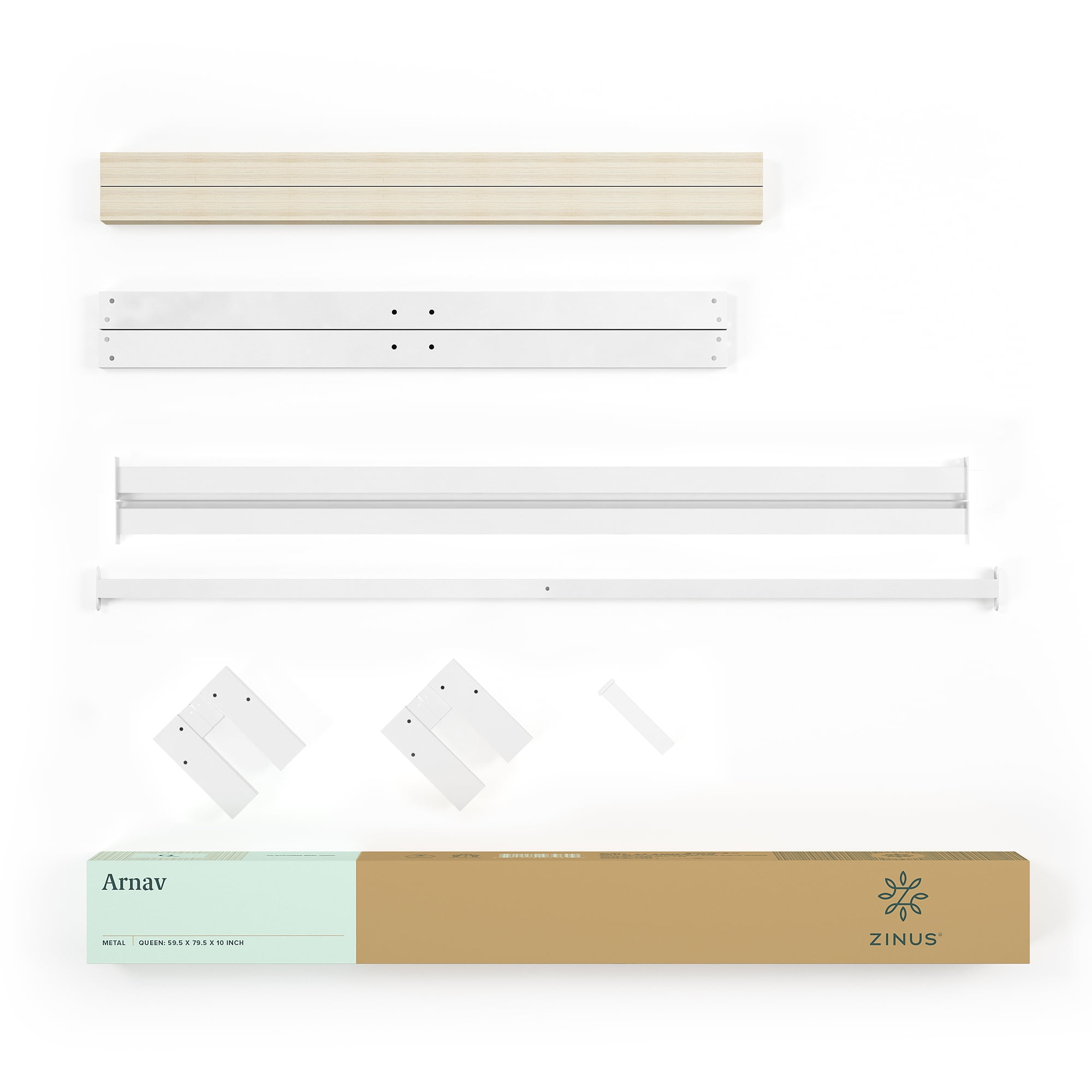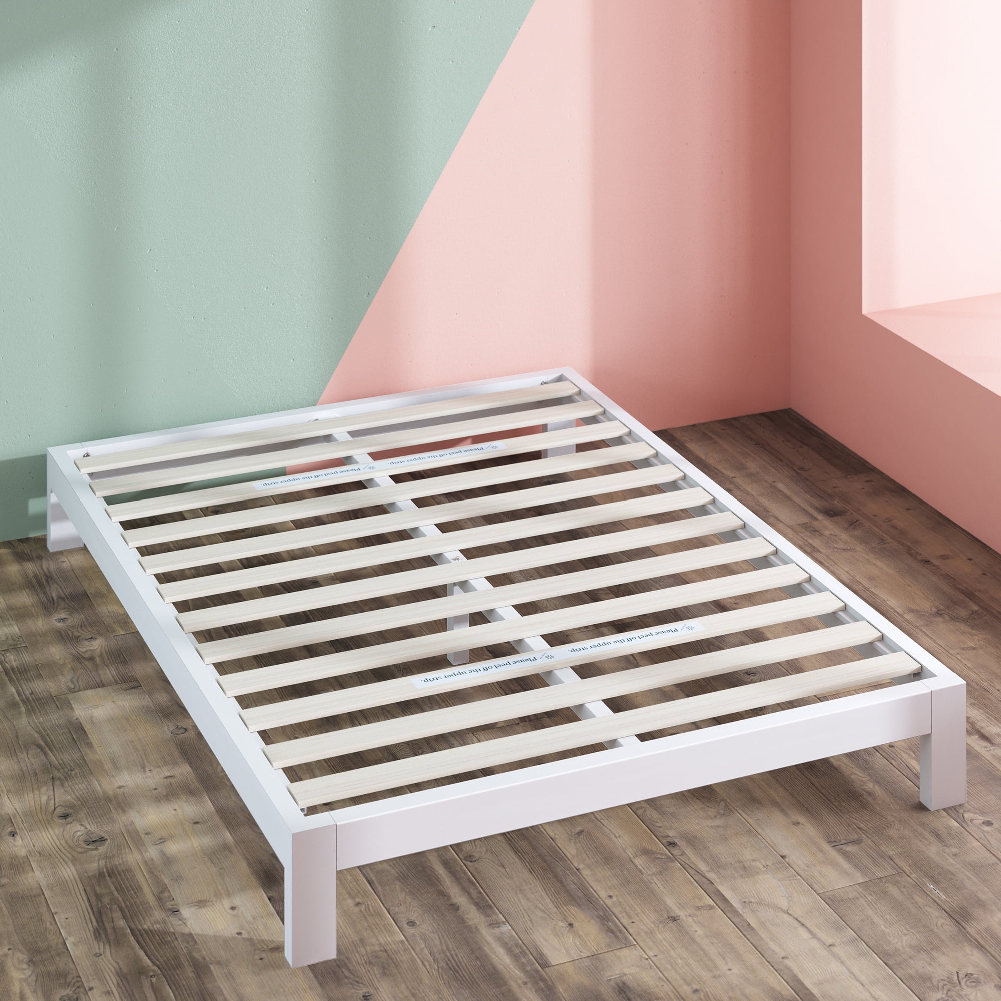 Zinus Arnav 10” White Metal Platform Bed Frame, Queen STRONG MATTRESS SUPPORT WITHOUT THE FUSS – With a simplistic silhouette that can complement a variety of design ambitions, this rock-solid foundation looks as sturdy as it feels with durable steel construction and closely spaced wooden slats HEADBOARD COMPATIBLE – Easily attach this frame to your own standard-sized headboard using the predrilled holes in two of the legs; headboard not included NO BOX SPRING NEEDED – Reliable wood slats are designed to support your latex, memory foam or spring mattress without a box spring; twin size supports a maximum weight capacity of 350 lbs, while all other sizes can support up to 700 lbs EASY ASSEMBLY – All parts, tools and instructions are shipped straight to your door in one efficiently packed box for simple set-up that takes less than an hour Worry-free 5 year limited warranty included; mattress sold separately See our assortment of Zinus products