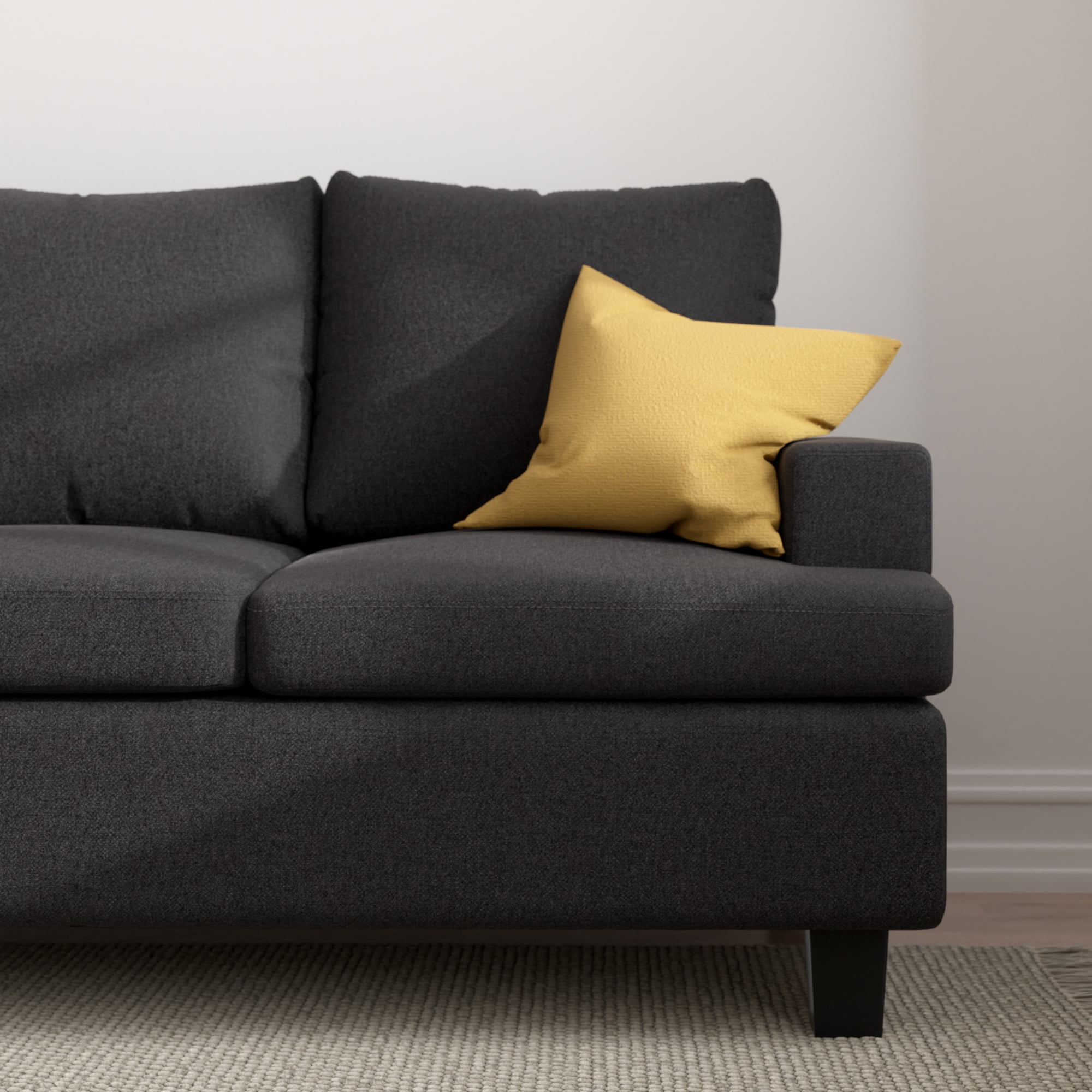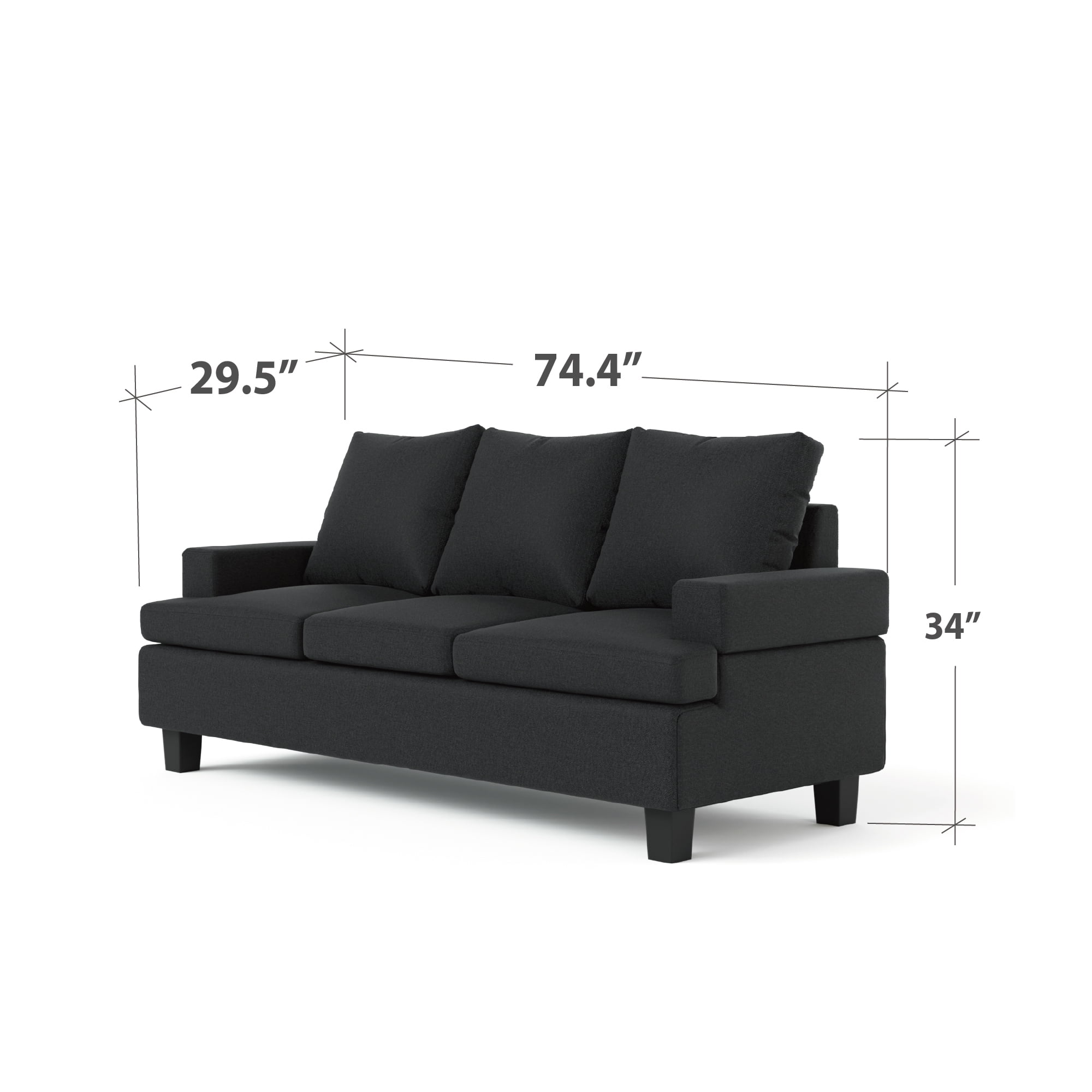 A classic living room staple, this Chase sofa brings contemporary charm and comfort to any living space. With just a touch of modern edge, its sleek silhouette comes in dark grey upholstery, featuring a 3-cushion design with supportive foam cushions, soft padding, and squared-off arm rests to complete its versatile aesthetic. Good for more than just its looks, this piece offers just-right comfort that’s not too soft, not too firm and perfect for hours of lounging. Its textured fabric can be spot cleaned for easy maintenance. With its convenient one-box shipment, including all parts and instructions needed for its easy, tool-free assembly, you can put together your new sofa in just minutes! And if it’s not everything you dreamed it would be, a worry-free 1-year warranty is included for added peace of mind. Age group: adult.
