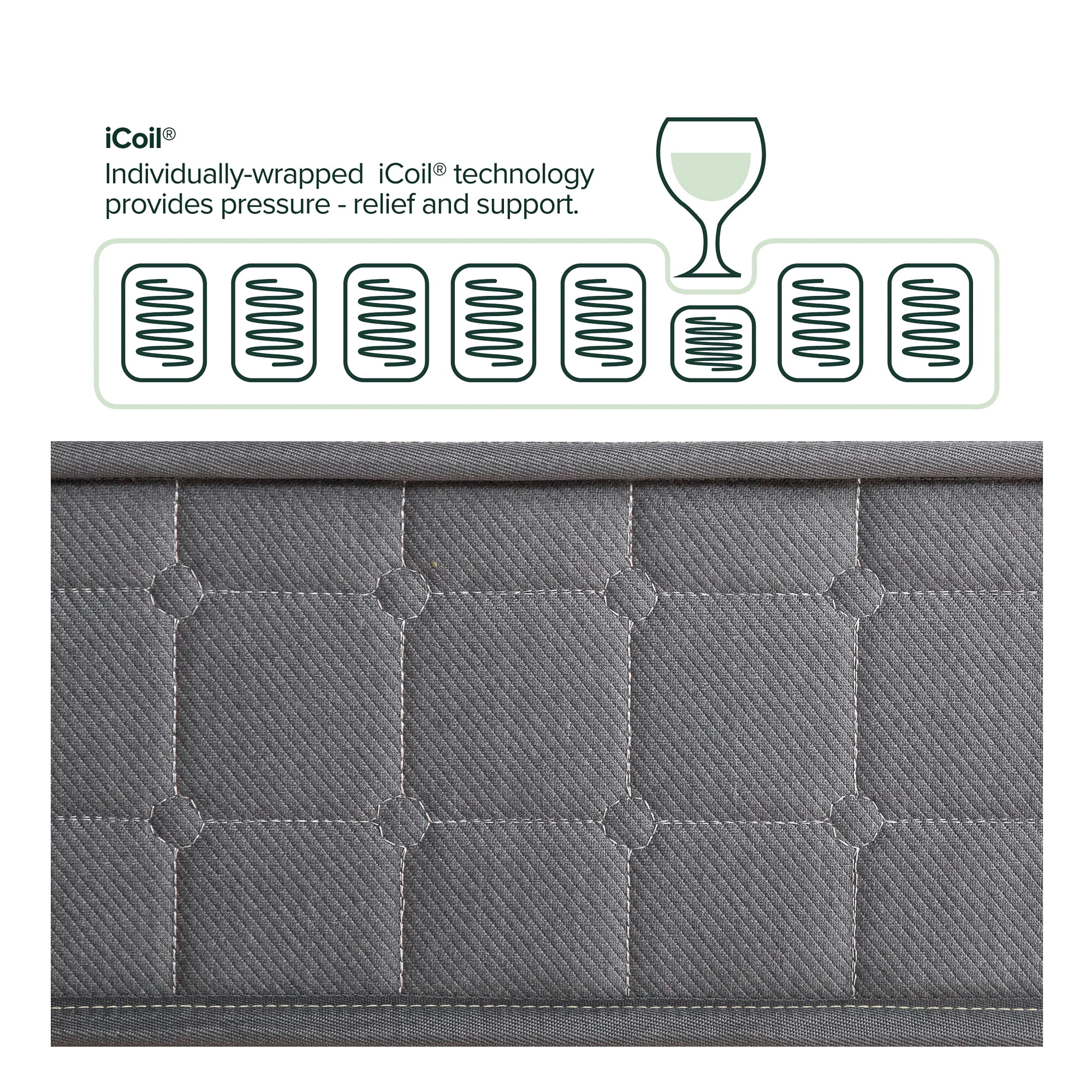 If hot sleeping keeps you up at night, your mattress is probably not pulling its weight. Fortunately for you, our Cool Touch Comfort Gel-Infused Hybrid Mattress doubles as both a super-effective cooling machine and a supremely comfortable place to lay your head. How do we craft such an efficient sleep surface. By packing it with premium ingredients and materials, like our thermoregulation swirl gel memory foam and a breathable, cool feeling Air Cool fabric cover. Together, they optimize ventilation, encourage airflow, and dispel excess body heat so your core temperature stays comfortable all night long. Multiple layers of premium, CertiPUR-US certified foams and a microfiber quilted top will have you snuggling up in total relaxation, with your joints and spine optimally supported all night long. The Cool Touch Comfort Hybrid keeps motion isolated and your curves gently supported thanks to our independent coil system, built with a perimeter of even heavier gauge steel springs that strengthen the mattress’s edges. This prevents sagging and makes sitting on and getting in and out of bed that much easier. And because we believe in delivering products that are supportive all around, the Cool Touch Comfort Hybrid is backed you can depend on. Age group: adult.