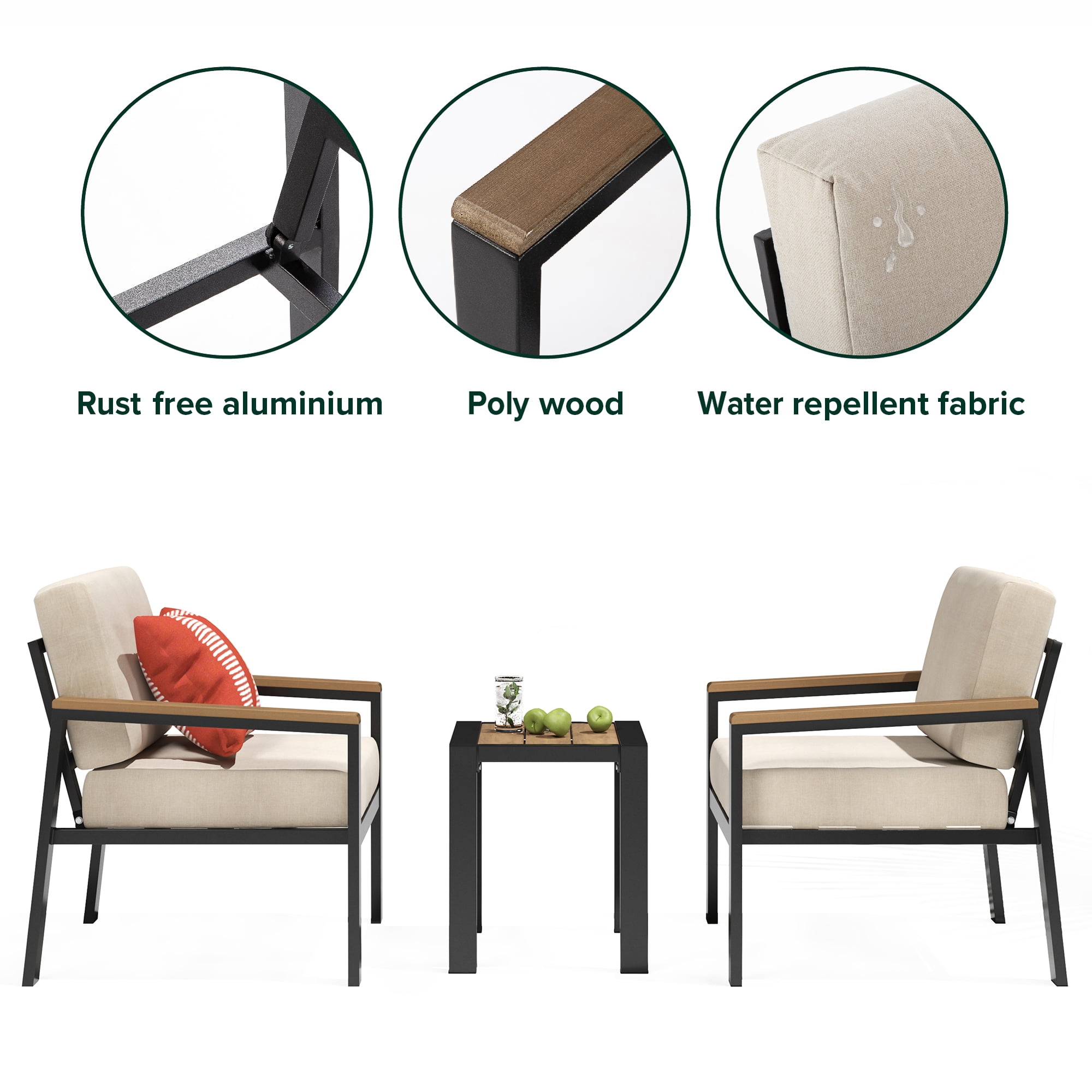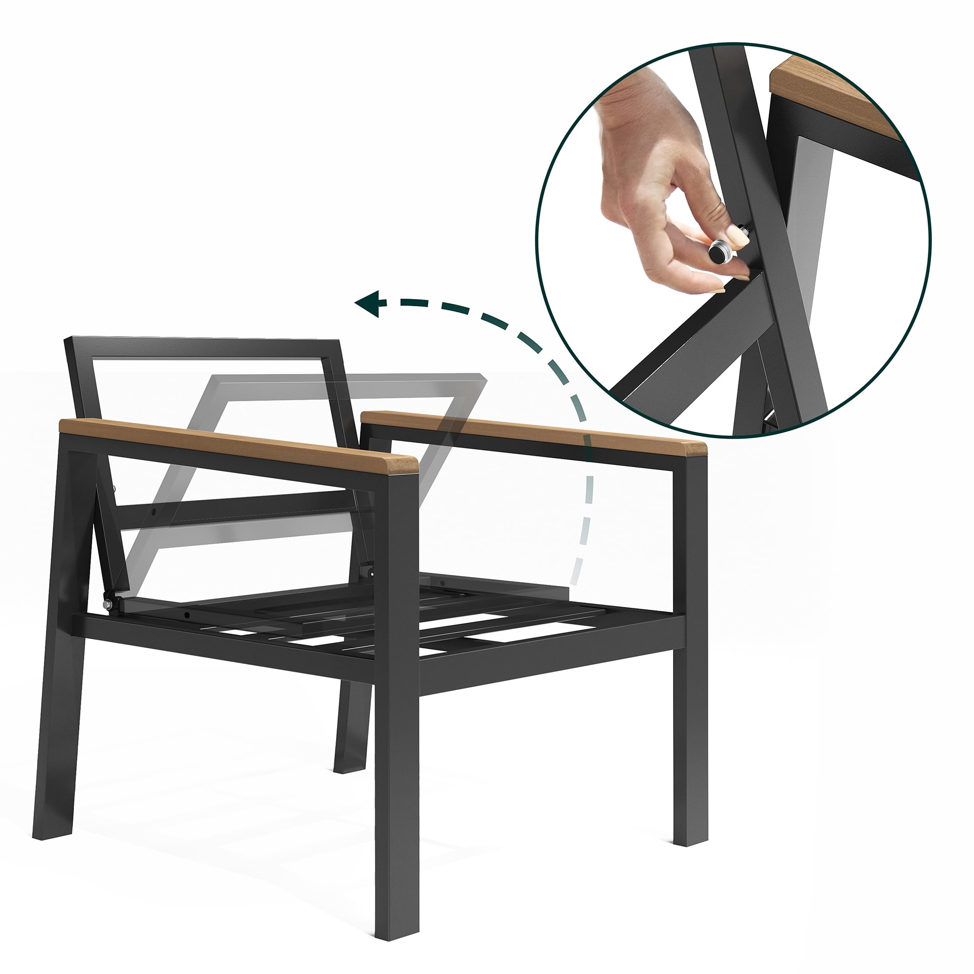 Zinus Dillon Aluminum and Poly Lumber Outdoor 3 Piece Chat Set, Black