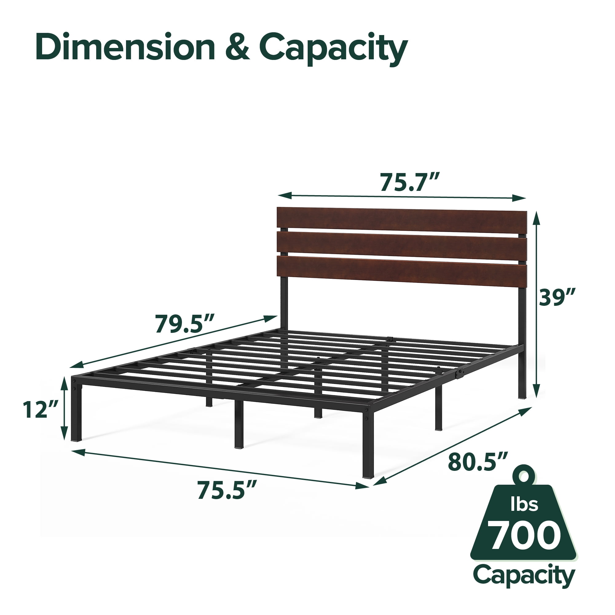 Zinus Figari 39” Bamboo and Metal Platform Bed Frame, Slatted Headboard, King STYLISH, DEPENDABLE, AFFORDABLE – A solid steel frame is paired with sustainable bamboo with a gorgeous coffee bean finish, so you get a bed that’s easy on your wallet but looks and feels like a million bucks DURABLE CONSTRUCTION – Crafted with a naturally durable bamboo headboard and a sturdy steel frame with additional support legs designed for long-lasting, noise-free use; 12 inch platform features 10.4 inches of under bed clearance space for storage NO BOX SPRING NEEDED – Solid steel frame is engineered with a metal slat platform that supports any mattress without the box spring; twin size supports up to 350 lbs, while all other sizes can support up to 700 lbs EASY ASSEMBLY IN UNDER 1 HOUR – Everything you need is efficiently packed into one box and shipped straight to your door; all parts, tools and instructions are included for easy, two-person assembly in under an hour WORRY-FREE WARRANTY – A 5-year manufacturer warranty is included for ultimate peace of mind Age Group: Adult, Universal. See our assortment of Zinus products