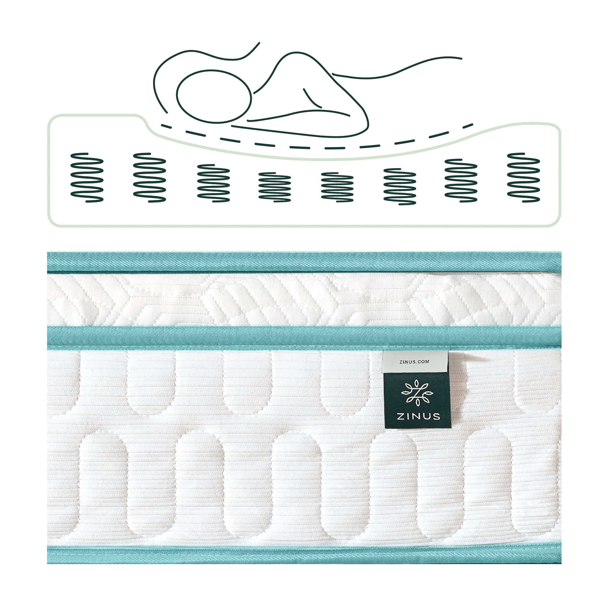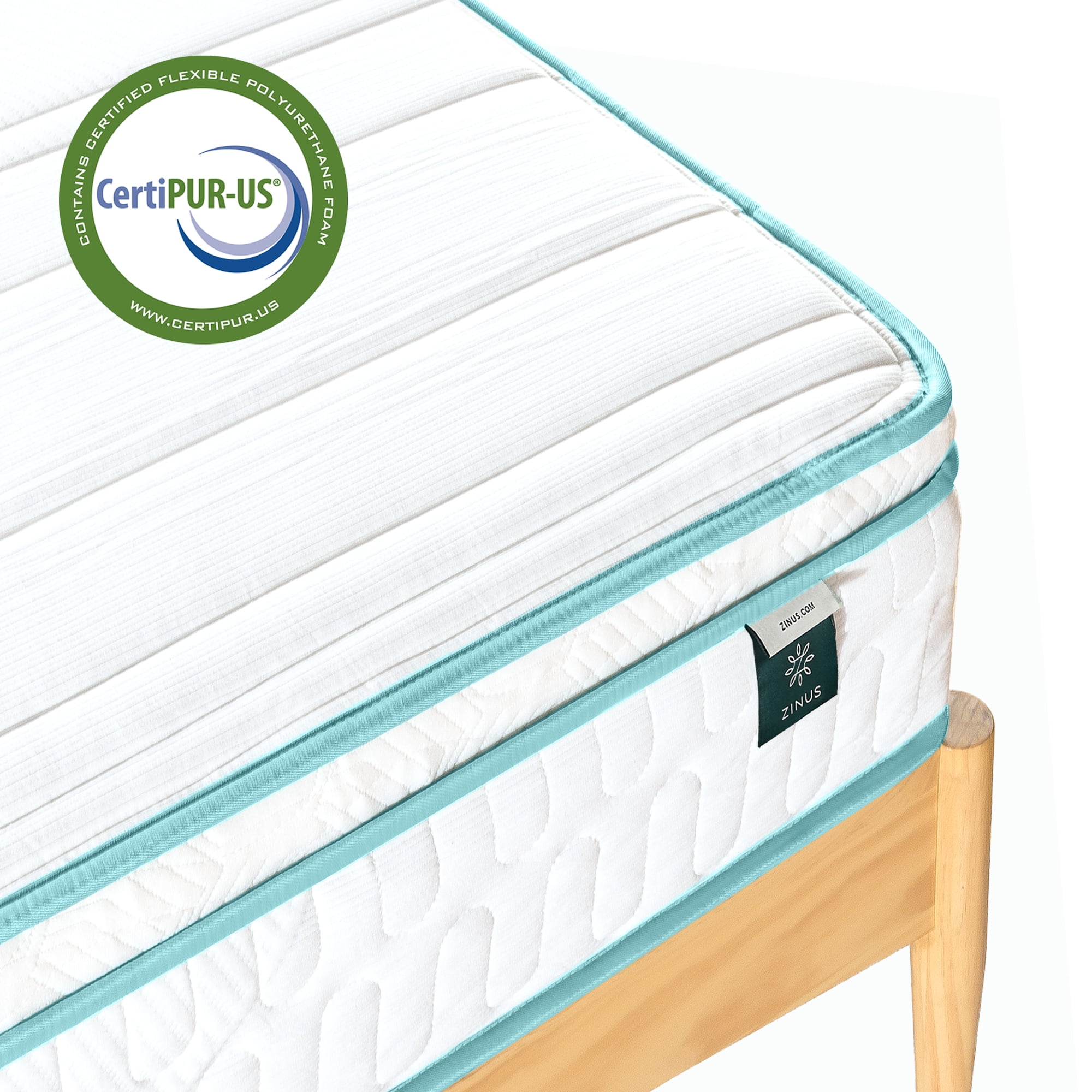 Zinus Green Tea Infused Euro Top 10″ Innerspring Mattress, Full GREAT SLEEP IS REFRESHING SLEEP – Our famous odor-neutralizing green tea infused foam is now available in a Innerspring mattress with a plush euro top and traditional innersprings for comfort that’s supportive, enveloping and always fresh THE ULTIMATE COMFORT BLEND – Made with .5 inch memory foam, .2 inch high-density foam, 2 inches Visco-latex foam, .5 inch comfort foam and a 6 inch base layer of steel innersprings for support with pressure-relieving softness Ideal for stomach sleepers and petite to average-weight individuals CERTIPUR US CERTIFIED – Highest quality foam is CertiPUR US Certified for durability, performance, and content EXPERTLY PACKAGED – Our technology allows this mattress to be efficiently compressed into one box that’s easily shipped and maneuvered into the bedroom; simply unbox, unroll and this mattress does the rest, expanding to its original shape within 72 hours Memory, high-density, comfort and Visco latex foams with steel innersprings Twin mattress supports a maximum weight of 250 lbs, while all other sizes can support up to 500 lbs Worry-free 10 year limited warranty included Age group: Adult See our assortment of Zinus products