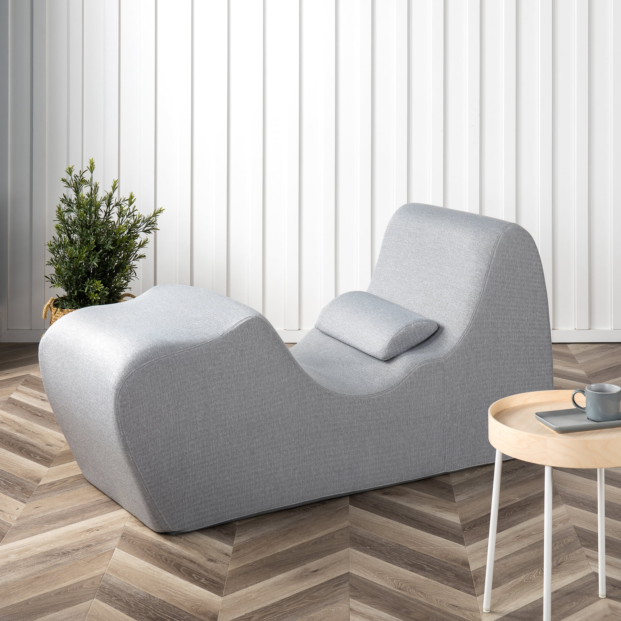 Zinus Lotus Zero Gravity Chaise Indoor Lounger, Herringbone Light Grey ZERO GRAVITY POSITIONING – Unique, curved design allows you to assume a neutral, zero gravity position, which has been proven to take stress off the spine and joints, improve circulation, decrease swelling and reduce heartburn and acid reflux DENSE FOAM CONSTRUCTION – One-of-a-kind shape is formed using durable high-density foam layers which are softer beneath the head and spine and firmer at the legs and base BETTER RELAXATION – Comfortable upright positioning for reading, watching TV or taking a midday nap LUMBAR PILLOW – An adjustable pillow is included, and can be used to support your spine or prop up your head EASY CARE COVER – A zip-on cover is made of a polyester/spandex blend and can be easily spot cleaned with a mild soap and damp cloth EFFICIENTLY PACKED – Foam structure is efficiently compressed; please allow 24 – 48 hours for the lounger to fully decompress and return to its original shape CERTIPUR-US CERTIFIED – All foam is of the highest quality and is CertiPUR US Certified for durability, performance, and content One-year limited warranty included See our assortment of Zinus products