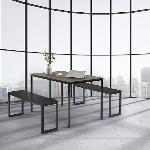 Zinus Louis 48″ Espresso Metal Frame Dining Table with Benches, 3 Piece Indoor Dining Set