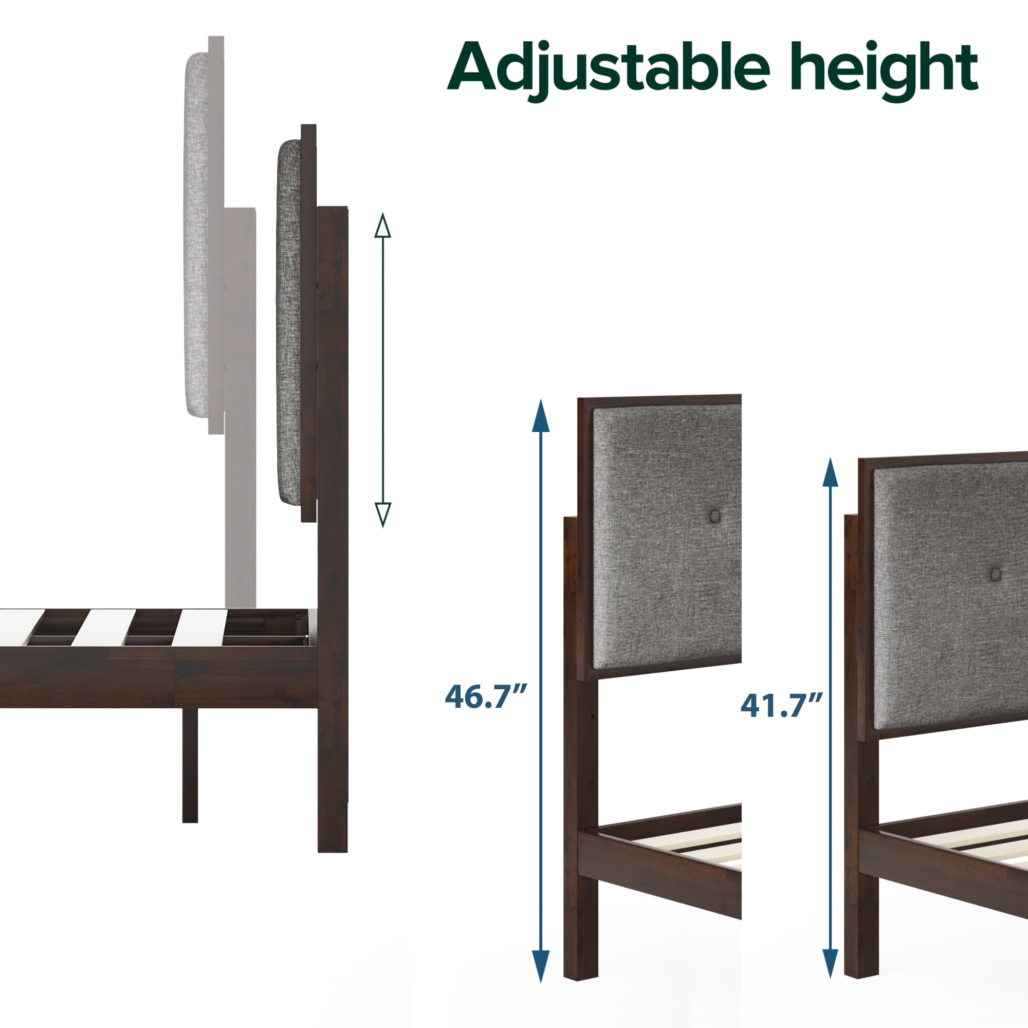Zinus Moiz 42″ Wood Platform Bed Frame with Adjustable Upholstered Headboard, Queen