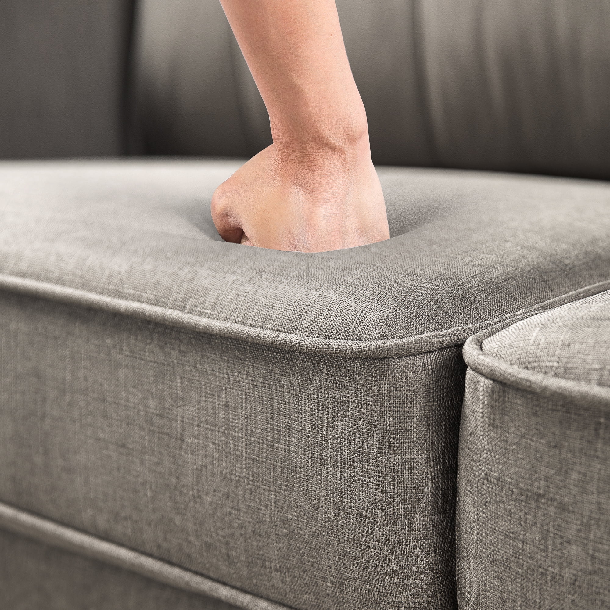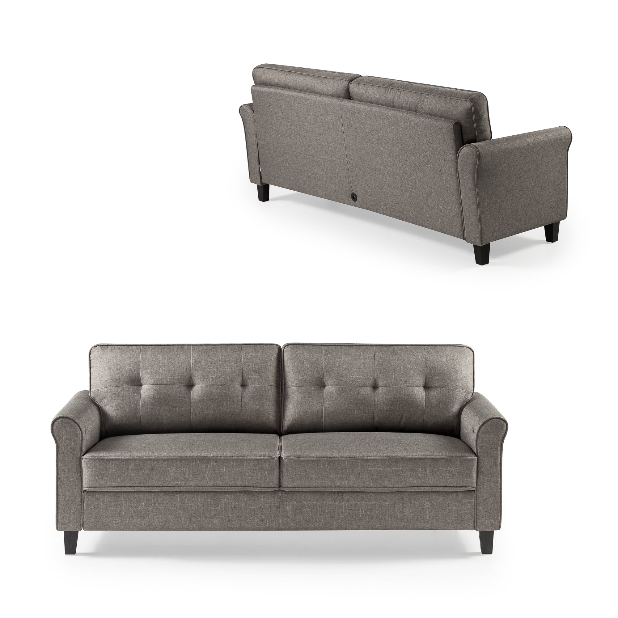 Zinus Sayan Indoor Sofa with USB Ports, Sand Grey, Seat cushions are secured to the frame and are not detachable, while back cushions are detachable. TOOL FREE ASSEMBLY – All parts and instructions are cleverly packed into one box for incredibly easy assembly. EASY CARE – Cushions are easily cleaned with a clean, damp cloth and mild detergent; seat cushion covers are not removable. Worry-free 1-year limited warranty included. S SOPHISTICATED STYLE MEETS SIMPLE SETUP – Sit pretty and comfortably atop this mid-century inspired sofa PLUGGED IN – Two USB ports on either arm of this sofa with securely bundled cords underneath let you keep your devices fully charged right at your side BUILT TO LAST – A sturdy frame is wrapped in supportive foam cushioning and durable woven fabric; seats a maximum weight capacity of 750 lbs Age group: Adult.