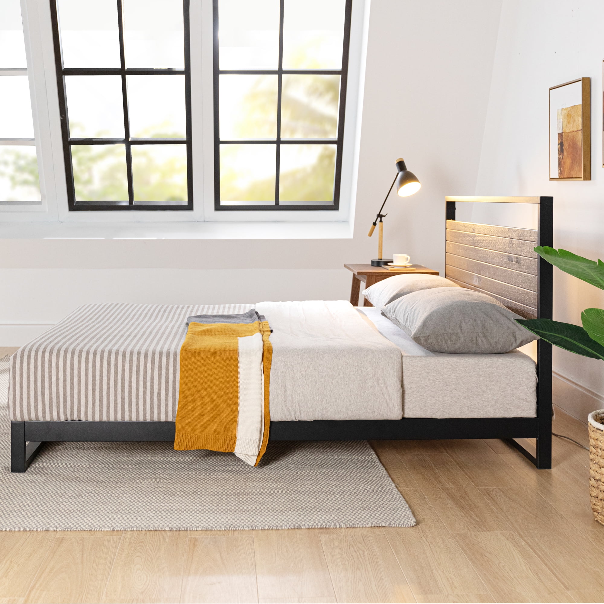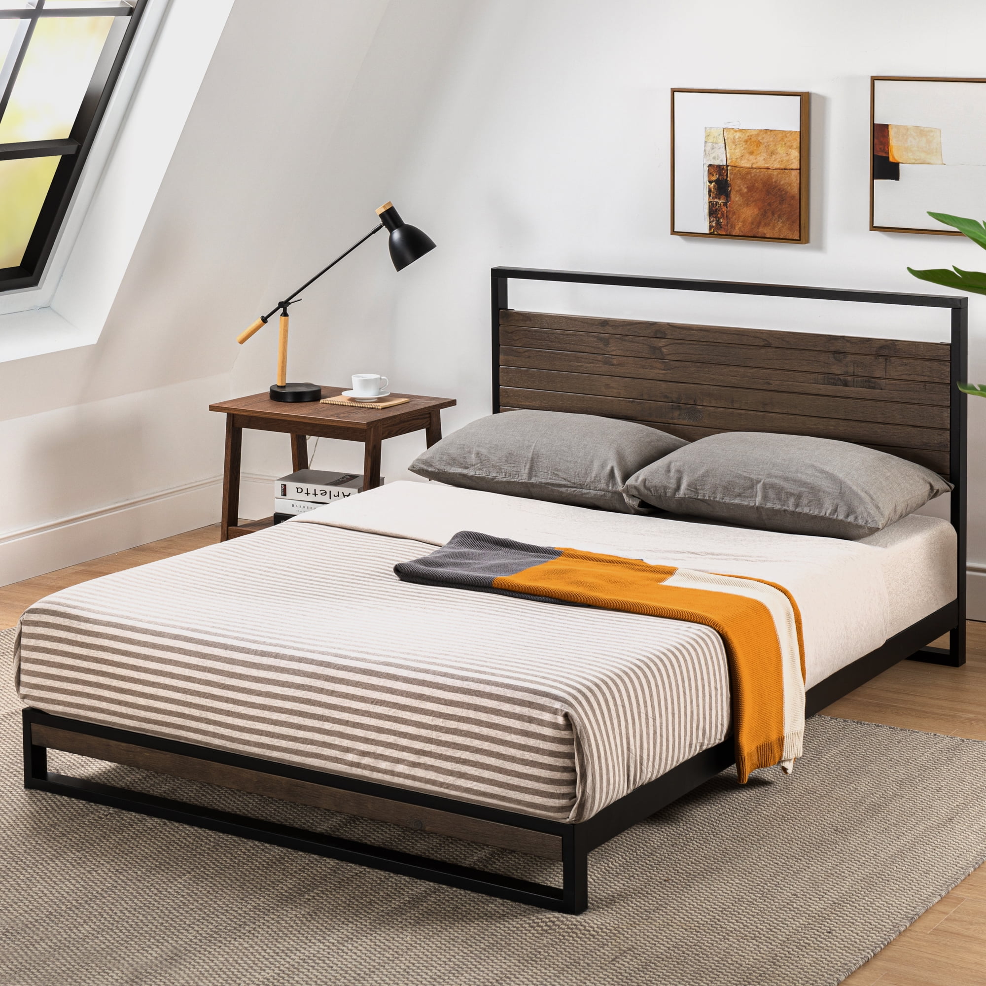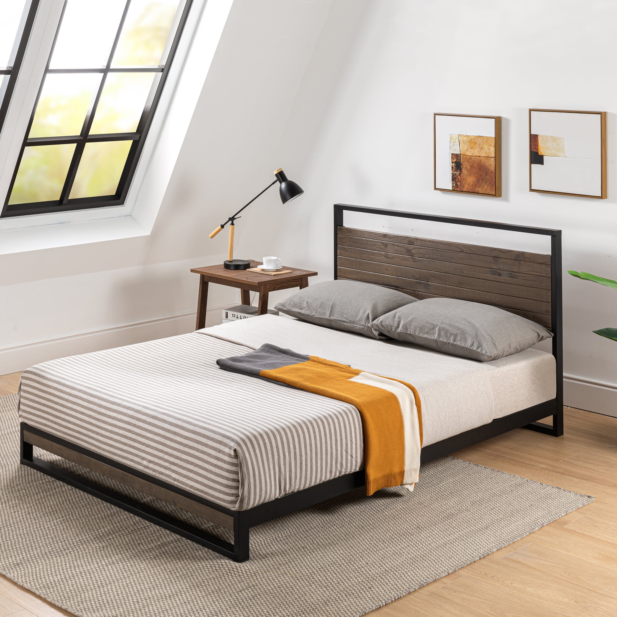 Zinus Suzanne 37″ Metal and Wood Platform Bed Frame with Headboard, Grey Wash, Queen