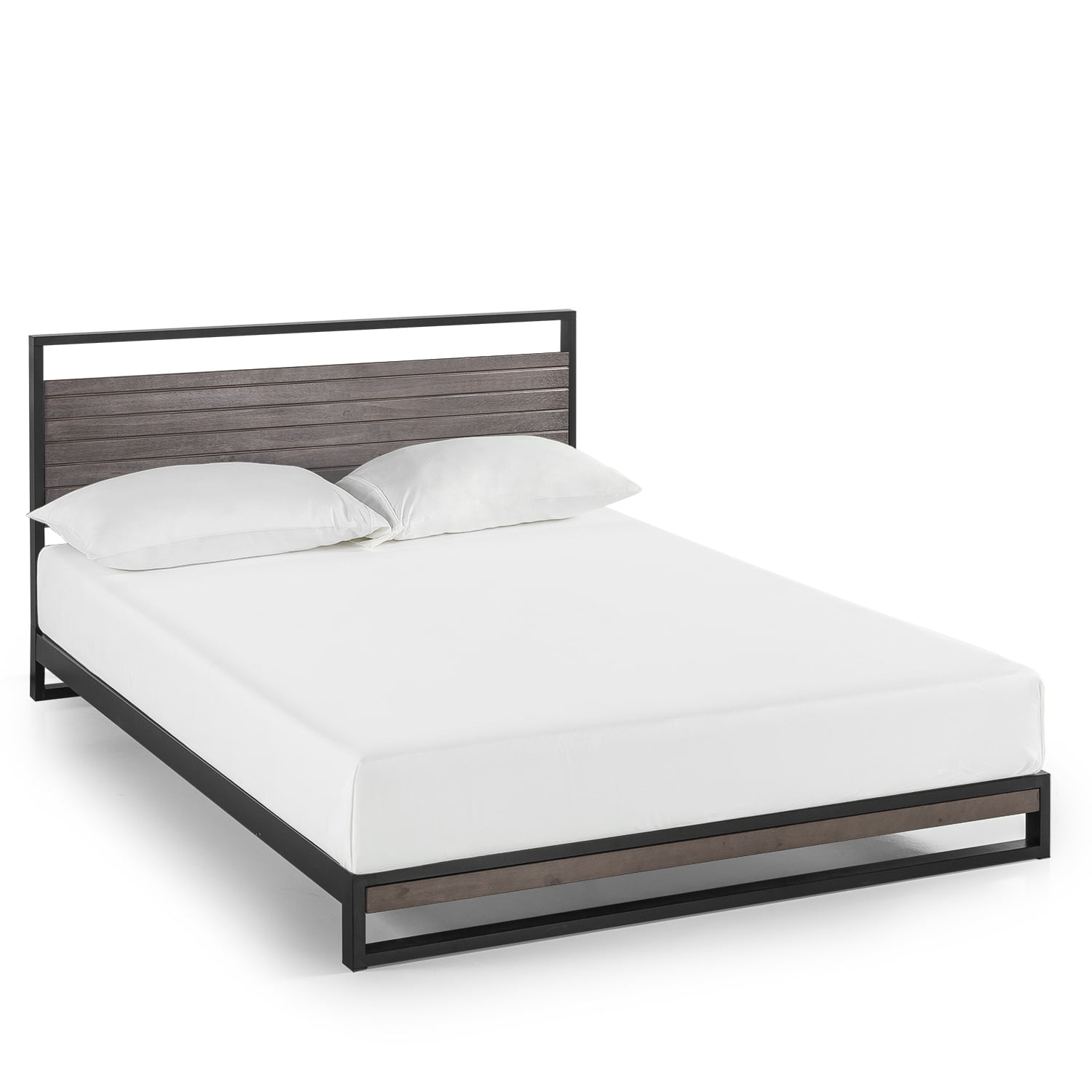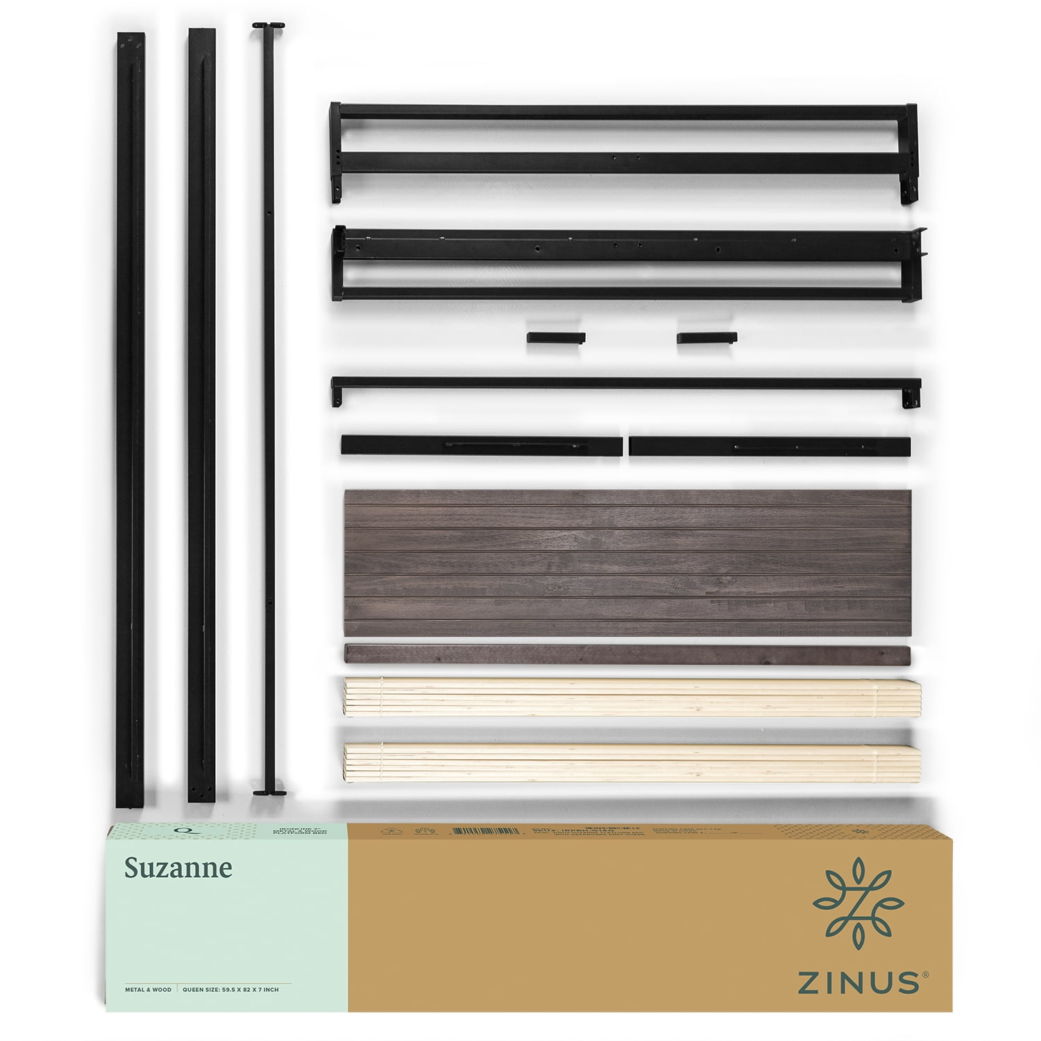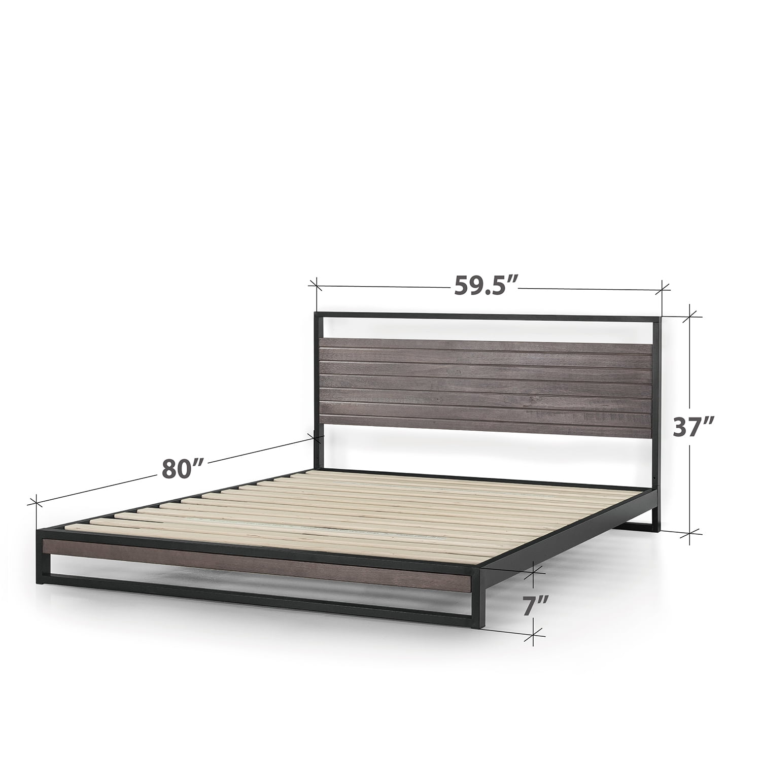 Zinus Suzanne 37″ Metal and Wood Platform Bed Frame with Headboard, Grey Wash, Queen FINEST QUALITY MATERIALS AND CRAFTSMANSHIP – Made with closely spaced wooden slats, genuine solid wood with gorgeous natural wood grain and bold, durable steel, the Suzanne Platform Bed is in a class all its own BUILT TO LAST – Strong steel frame is anchored with a support bar and extra middle legs to ensure ultimate stability and longevity; twin size can support up to 350 lbs, while all other sizes can support up to 700 lbs SUPERIOR, NOISE-FREE MATTRESS SUPPORT – Closely spaced wooden slats are securely fastened to the frame for squeak-free use without a box spring; each size comes with 12 – 13 durable slats that measure 2.8 inches wide and are spaced 2.95 inches apart EASIEST. ASSEMBLY. EVER. – Everything you need for painless setup is efficiently packed into one box and shipped straight to your door; all parts, tools and instructions are included for intuitive, two-person assembly that takes less than an hour Mattress sold separately Age group: Adult.
