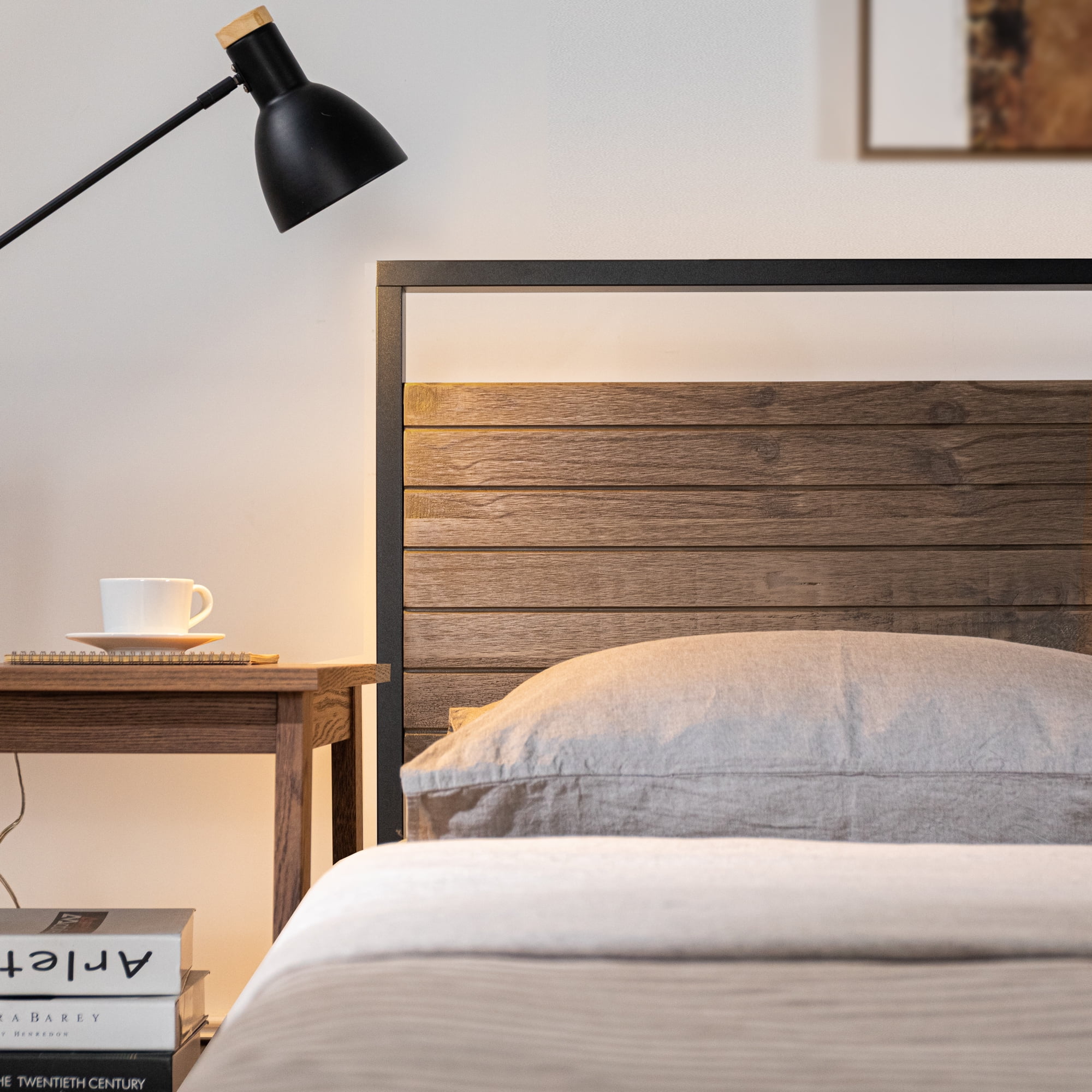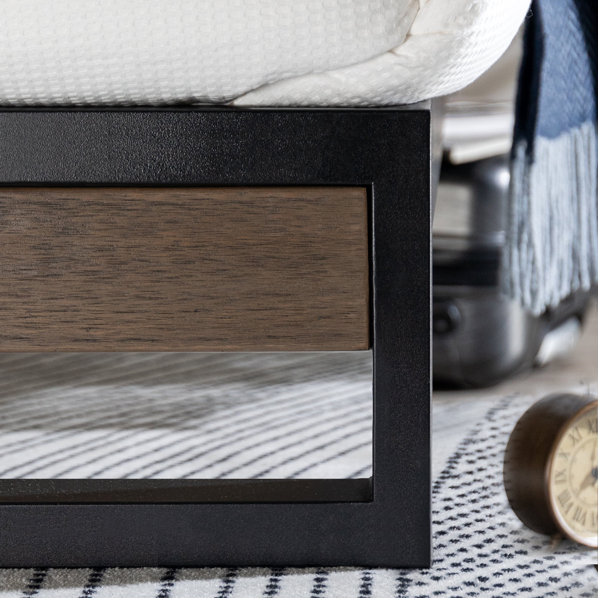 Set your bedroom to stun with the gorgeous craftsmanship of our high-quality Suzanne Metal and Wood Platform Bed. Solidly built and oh-so attractive, this inviting foundation is made from top-notch materials like genuine, solid wood and a strong, tubular steel base. The use of genuine wood delivers a one-of-a-kind, natural wood grain pattern that’s beautifully balanced with distinct, black painted metal framework. Plus, it features the outstanding mattress support of wide, closely spaced wooden slats that help extend the life of your mattress without ever needing a box spring. We’ve also added non-slip tape to the platform that prevents squeaking while also helping to keep your mattress in place. And when we say strong, we mean it. Full, queen and king sizes are built to effortlessly support up to 700 lbs, meaning the kids and the dog can join you in bed with no problem. It’s designed to be as simple to set up as it is stylish, which is why we pack it with all the tools and step-by-step instructions needed for painless assembly. Also included? A 5-year warranty against any defects in workmanship or materials. So whether you’re catching zzz’s or just enjoying the view, the expertly crafted Suzanne is made to get the job done. Age group: Adult.