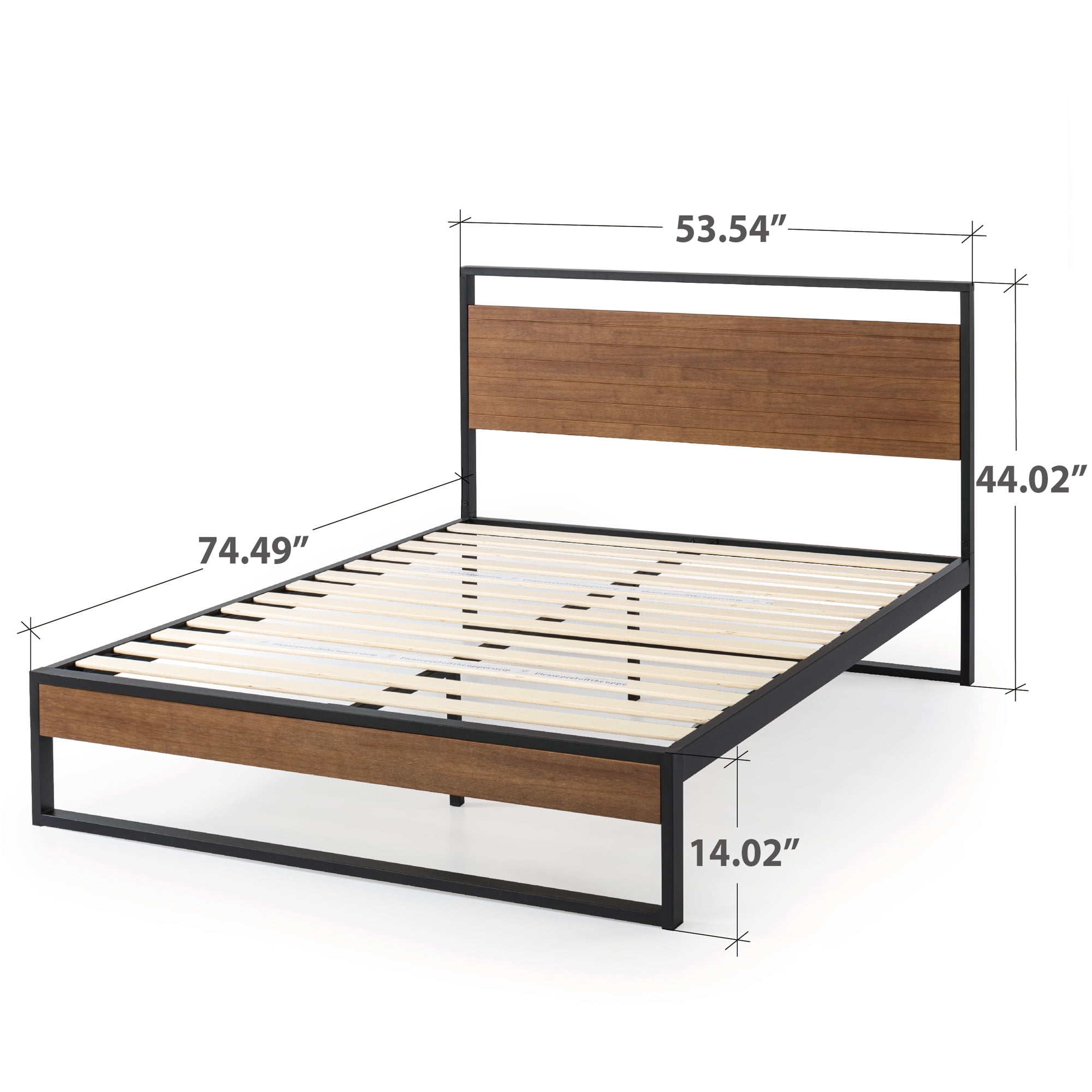 Zinus Suzanne 44 Metal and Wood Platform Bed Frame with Headboard, Chestnut Brown, Full FINEST QUALITY MATERIALS AND CRAFTSMANSHIP – Made with closely spaced wooden slats, genuine solid wood with gorgeous natural wood grain and bold, durable steel, the Suzanne Platform Bed is in a class all its own BUILT TO LAST – Strong steel frame is anchored with a support bar and extra middle legs to ensure ultimate stability and longevity; twin size can support up to 350 lbs, while all other sizes can support up to 700 lbs SUPERIOR, NOISE-FREE MATTRESS SUPPORT – Closely spaced wooden slats are securely fastened to the frame for squeak-free use without a box spring; each size comes with 12 – 13 durable slats that measure 2.8 inches wide and are spaced 2.95 inches apart EASIEST. ASSEMBLY. EVER. – Everything you need for painless setup is efficiently packed into one box and shipped straight to your door; all parts, tools and instructions are included for intuitive, two-person assembly that takes less than an hour Worry-free 5 year limited warranty included; mattress sold separately Age Group: Adult, Universal. See our assortment of Zinus products