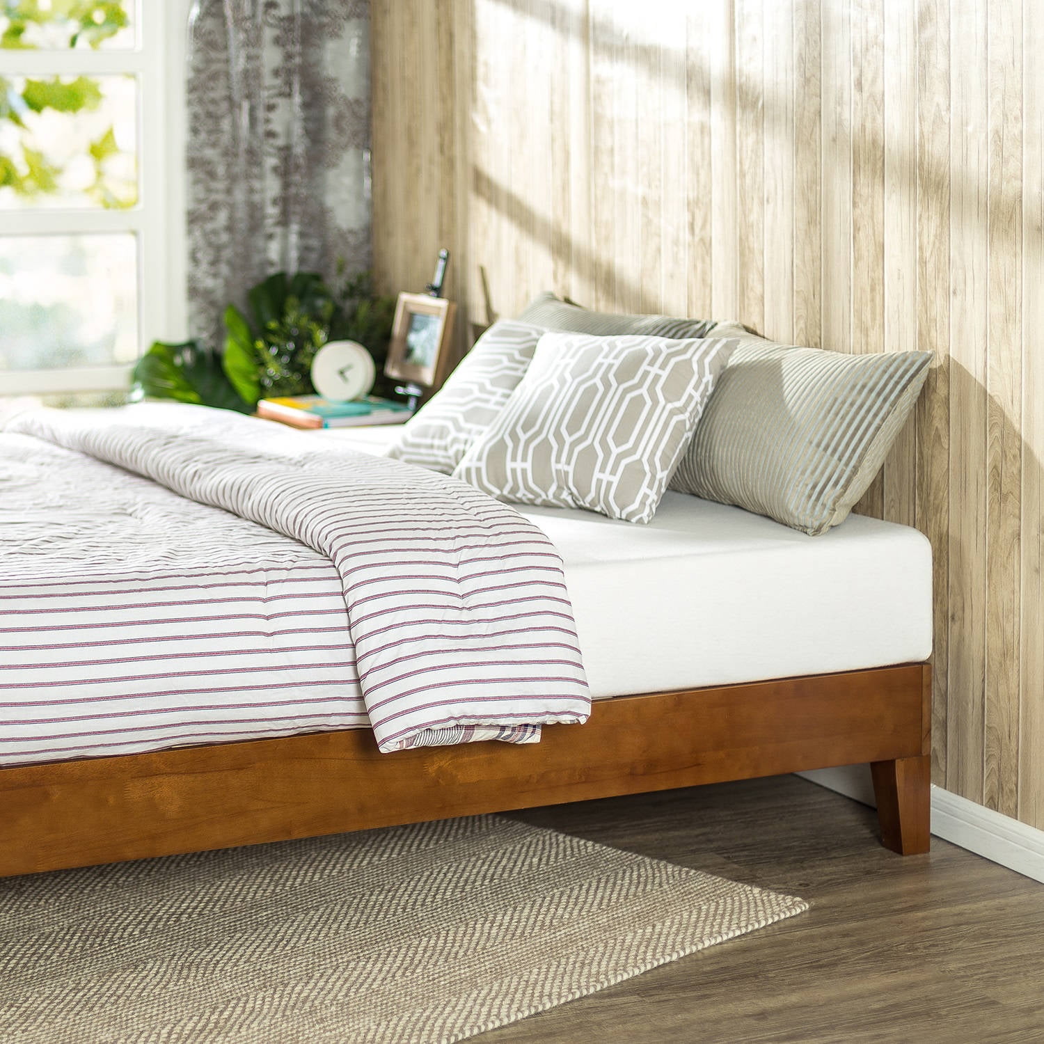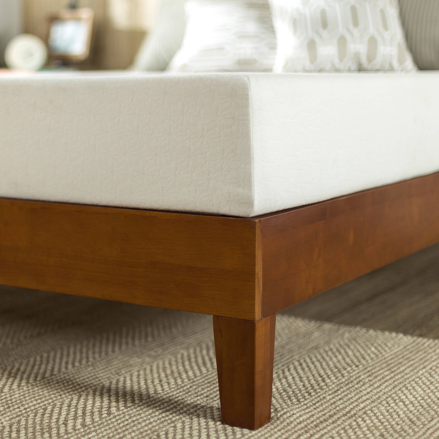 Zinus 12″ Wen Wood Platform Bed Frame, Cherry, Queen Crafted from solid acacia wood with a rich cherry finish Headboard- free design ideal for contemporary spaces and decor styles Included non-slip tape ensures a quiet, secure, and stable mattress setup Twin size supports a maximum weight of 350 lbs, Full, Queen, and King sizes support a maximum weight of 700 lbs Ships in one box with all needed tools and instructions 12 inches high with 5.75 inch frame Easy assembly in under an hour Worry-free 5-year limited warranty included; mattress sold separately See our assortment of Zinus products