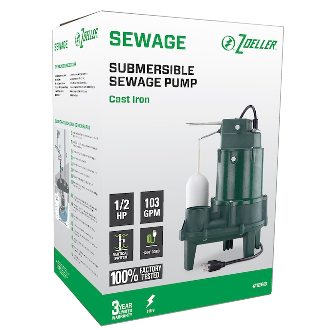 Remove sewage waste with the Zoeller pro 0.5 HP sewage pump. This pump features a premium Zoeller float switch tested to 1,000,000 cycles for reliable water removal and long pump life. The 0.5 HP Motor quickly eliminates waste from your pit providing up to a 103 GPM. The rugged cast iron construction and non-clogging vortex impeller provides long-term peace of mind. Instructions and a quick-start guide are included for your convenience to ensure easy installation and operation for this Zoeller pro sewage pump.