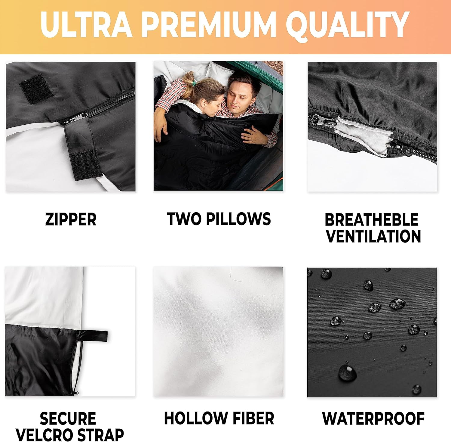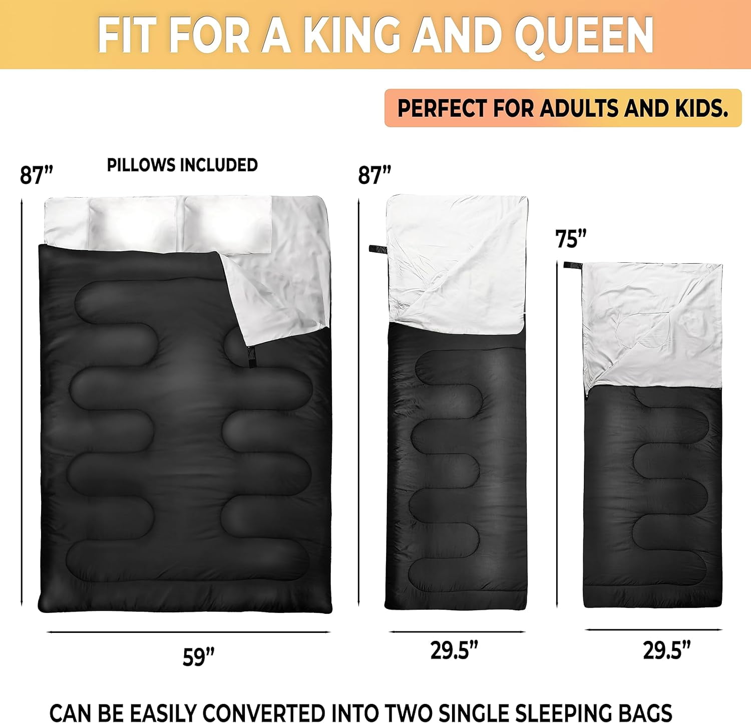 Zone Tech 2 Pack Double Camping Sleeping Bag w/ Pillows – 3-4 Season Lightweight Waterproof Warm & Cool Weather Adult & Kids Sleeping Bag Converts into 2 Single -Camping, Hiking, Outdoors