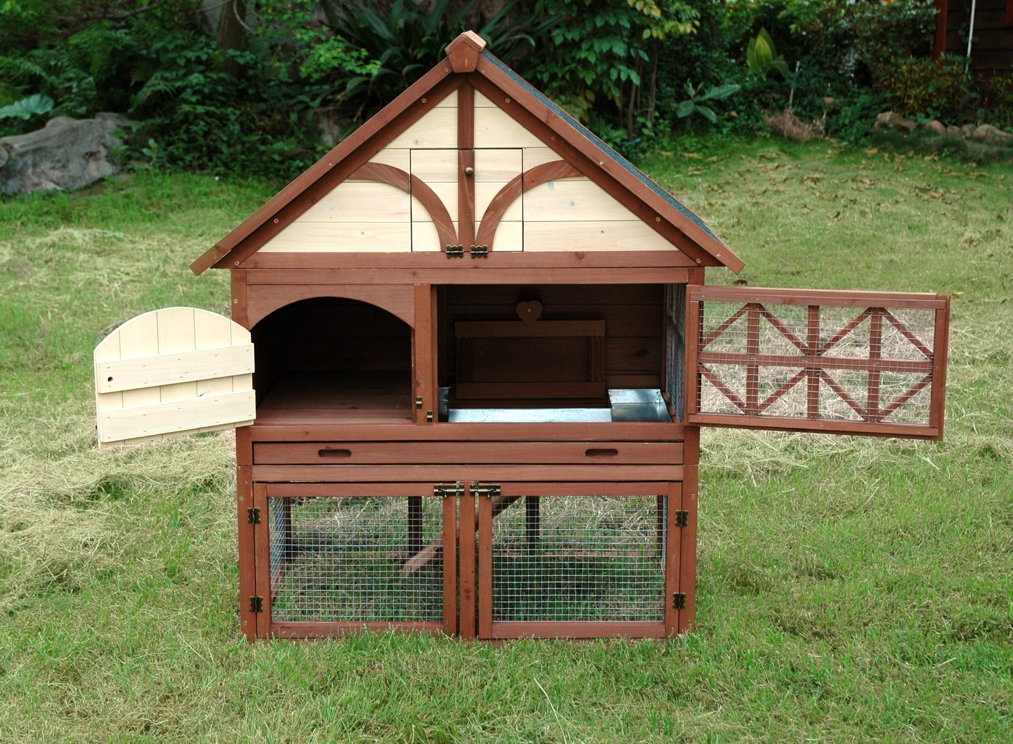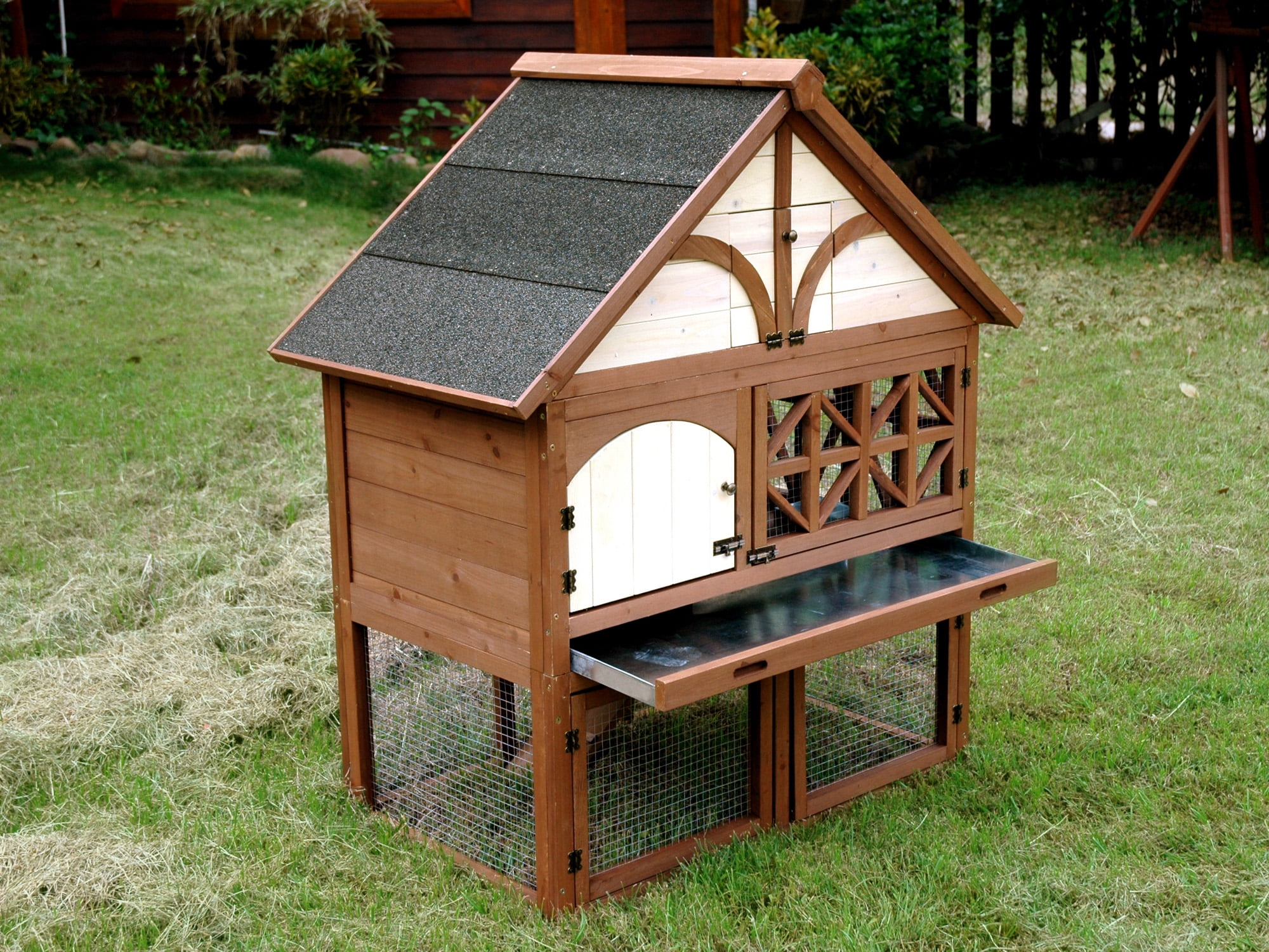 Tudor Rabbit Hutch The Tudor Rabbit Hutch provides your rabbits protection from predators, weather conditions and this spacious coop is perfect for those looking for a combined rabbit hutch and run. The Tudor Rabbit Hutch can comfortably hold up to 3 – 4 rabbits and comes with a large removable tray and two bottom doors, making cleaning a much quicker process. Extra storage space in the attic is also provided. Provides protection from predators and weather Combined rabbit hutch and run Holds up to 3-4 rabbits – Item Color: Multi – Indoor/Outdoor: Outdoor – Item Material: Hemlock – Dimensions (in): 24.21Dx45.08Hx38.98W – Item Weight: 47.84 – Item Depth: 24.21 – Item Height: 45.08 – Item Width: 38.98