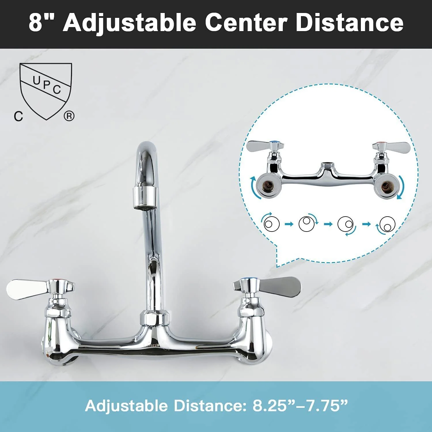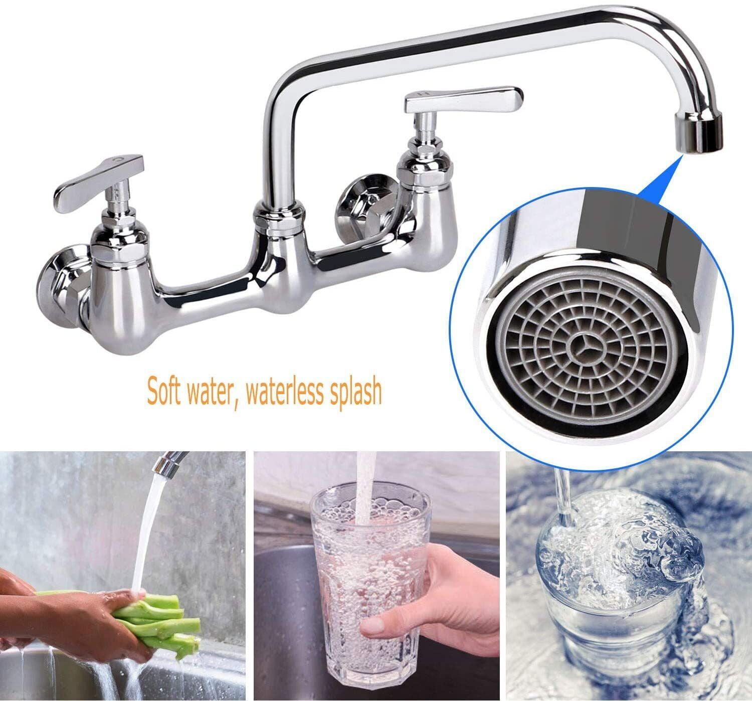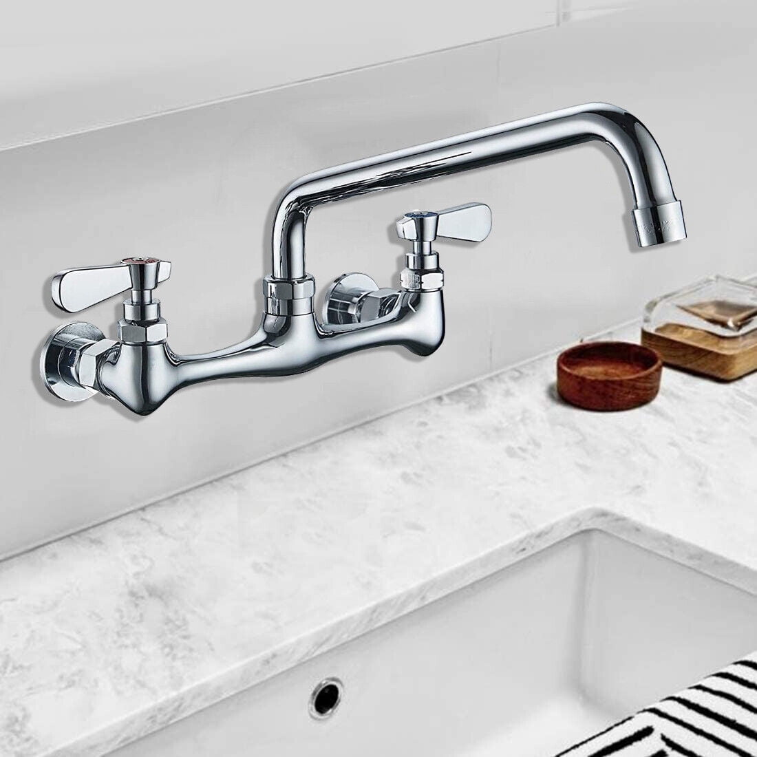 Zovajonia Commercial Kitchen Faucet 8 Inch Center Wall Mount 2Handle Swivel Sink Mixer Tap Polished Chrome