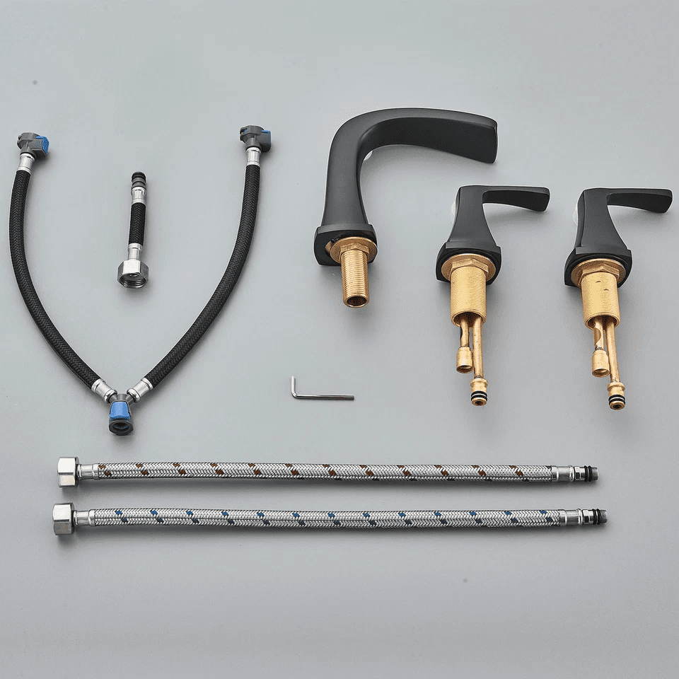 Type:8″ Widespread 3 holes 2 handles bathroom sink faucet Installation:3-hole 8-16in installation Handles Number:2 handles Main Body Material:Brass Handle Material:Zinc Alloy Finish: Brushed Nickel Two Lever Handle :Effortless temperature and flow control Ceramic disc cartridge :Perform up to 60,000 cyles Aerated Spout :Saving More than 30% water Solid Brass Body:For reliability and maximum durability Drain Assembly :Matching finish Pop Up Drain include Superior Finish :Corrosion and Rust-resistant 3/8 US Standard Hose 1*Brand New Faucet 1*Pop up drain with overflow 1* 3/8 inch Hot and Cold Flexible Hoses 1*Set Hardware