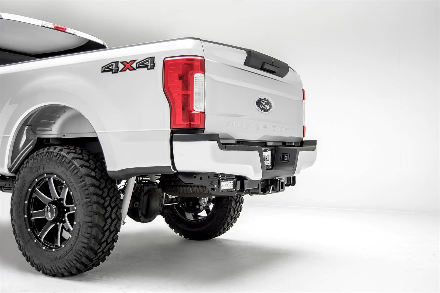 This innovative kit for the 2017-Present Ford F250 and F350 Super Duty is a 100 percent Bolt-On installation system and locates an LED Light just below the vehicle factory bumper using the OEM hardware. Rear Bumper / Frame LED Light Mounts ÎÃô with Swivel Adjustments are a 100 percent Bolt-On installation as well. Custom made to ZROADZ specifications with precision laser cut steel, pressed and formed to our tooling fixtures and powder coated black.Rear Bumper LED Mounting Kit Features:Bolt-On installationUtilizes OEM mounting locations and hardwareConfigurable with (1) 6-8 inch LED Light Bar on either sideSwivel adjustability for any mounting angleNo cutting, No drilling, No weldingPowdercoated gloss black finishLifetime product WarrantyManufactured by ZROADZ LED, Inc.Includes:Rear Bumper / Frame LED Light Mounts w/Swivel AdjustmentsSold As A KitDesigned To Fit:2017-Present Ford F250 Super Duty2017-Present Ford F350 Super Duty