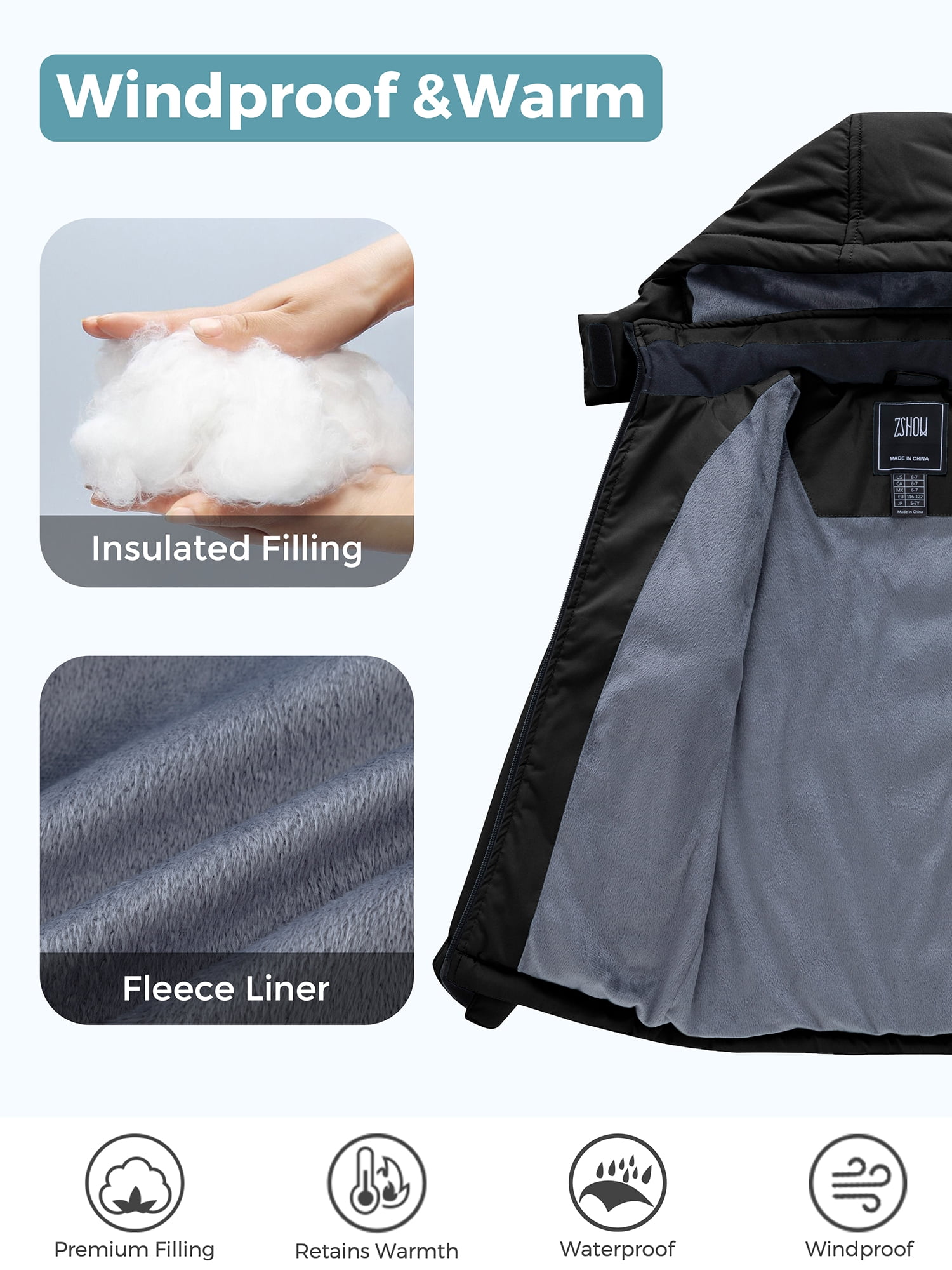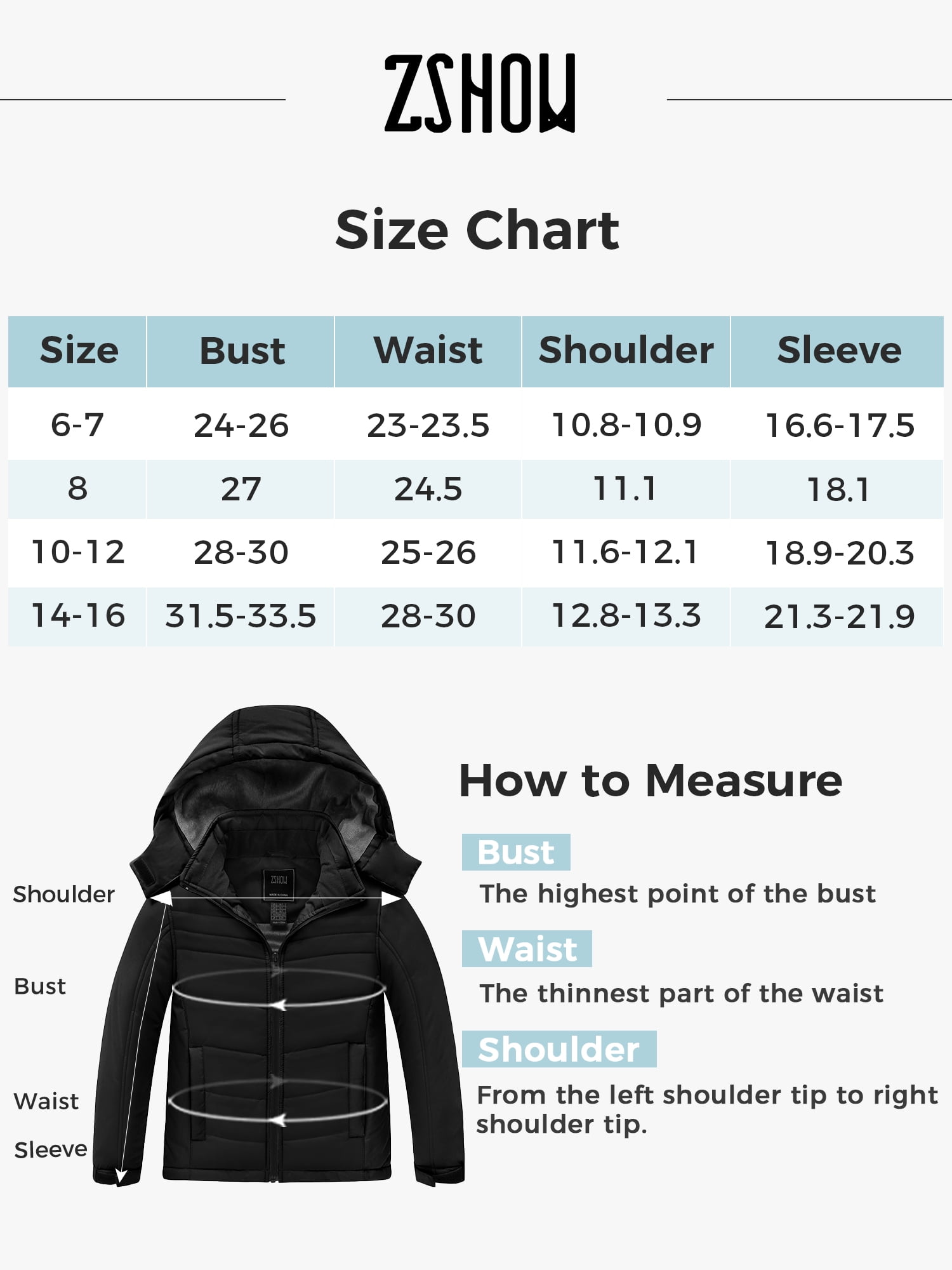 ZSHOW Girl’s Coat Warm Winter Coats Waterproof Winter Jacket with Hood Black 10/12