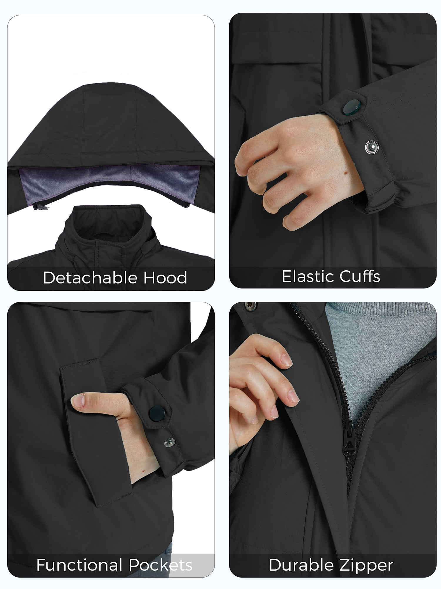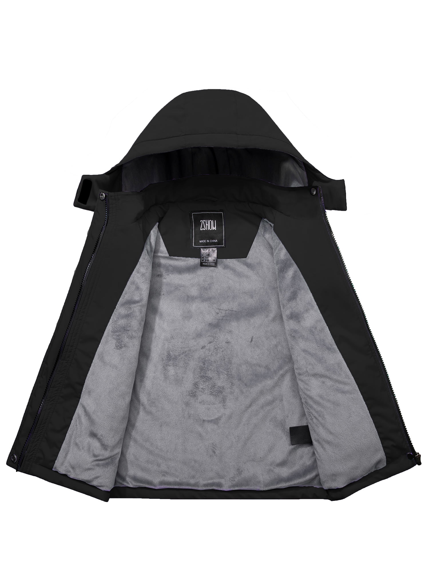 ZSHOW Girl’s Rain Coat Waterproof Ski Jacket Windproof Winter Hooded Raincoat Black 10/12