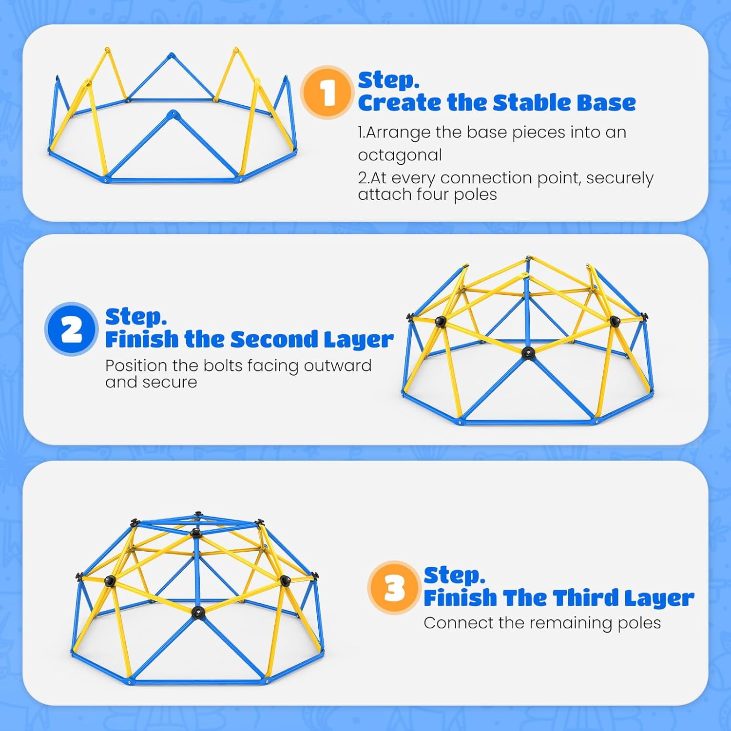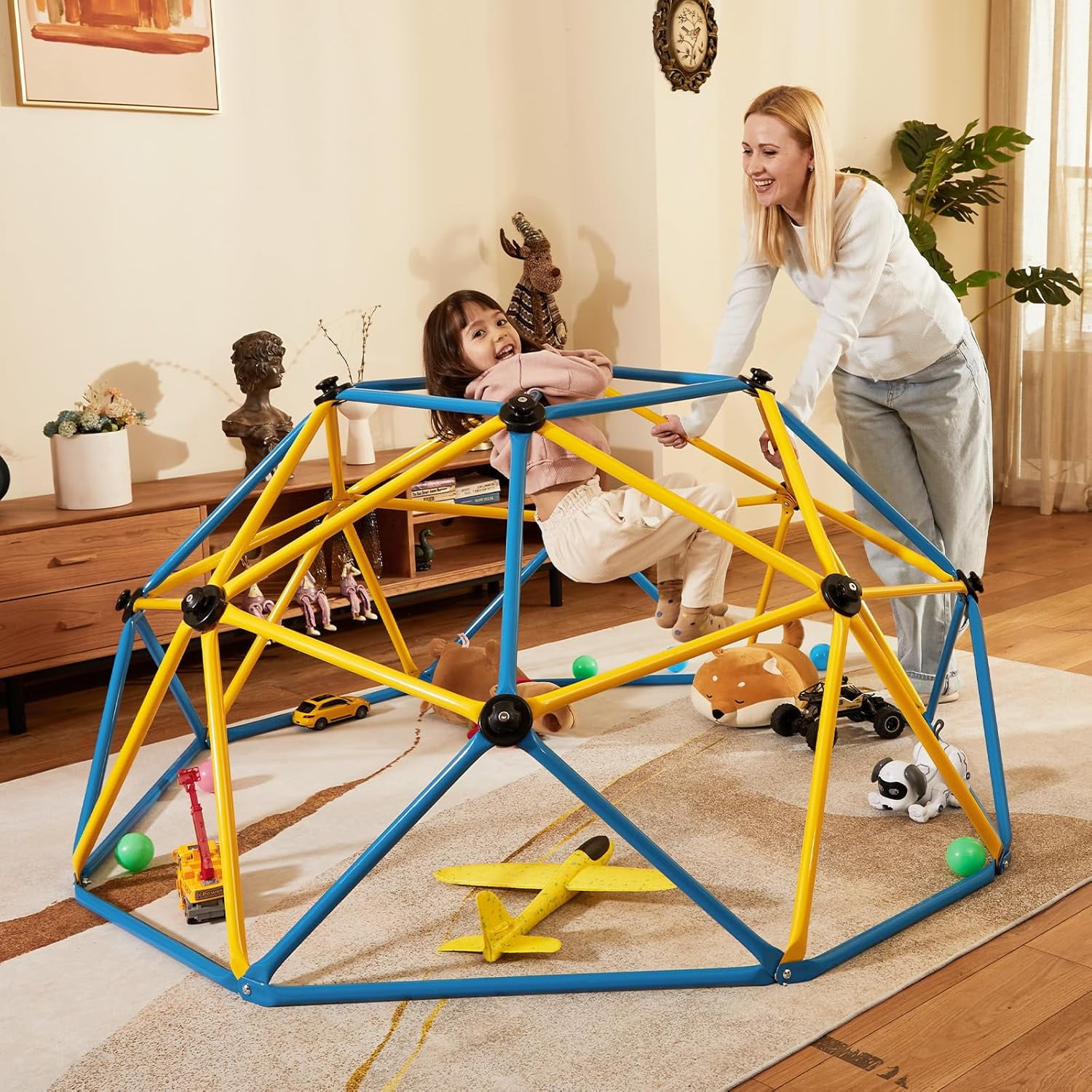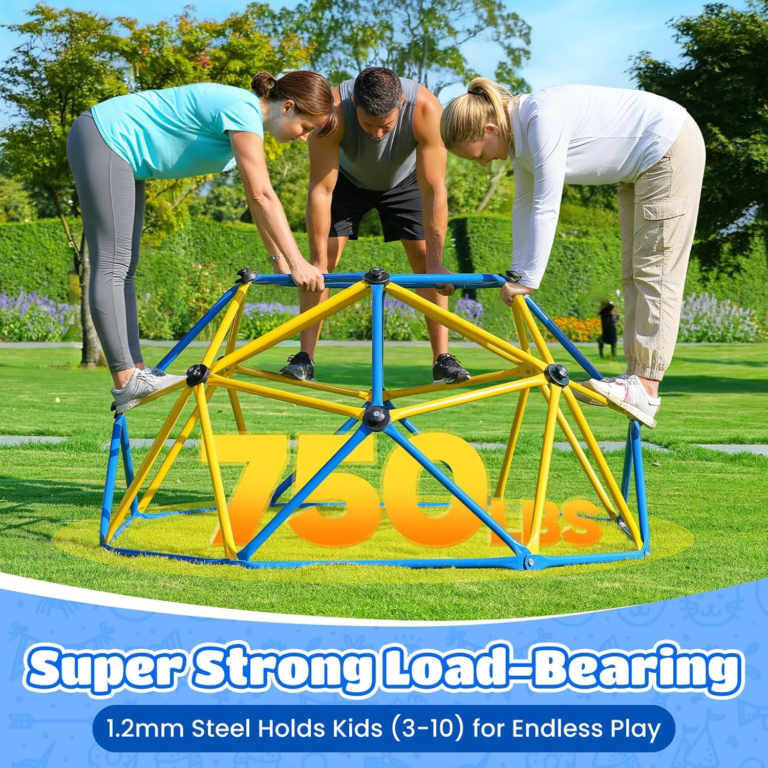 ✅【Upgrade Outdoor Playset】►We’ve made significant upgrades to our jungle gym by increasing the thickness of the five blue poles on the top, making Climbing Dome sturdier and safer for kids. ✅【1000lbs Capacity】►Our jungle gym can support up to 1000lbs, making it perfect for 1-6 kids under 10 years old. It measures 10 feet in diameter and 5 feet in height. ✅【Galvanized Steel】►Our climbing frames are made of hot-dip galvanized steel, ensuring durability and rust-resistance in all weather conditions. ✅【3D Assembly Video】►Our 3D assembly video makes assembling your jungle gym quick and easy. ✅【3-Year Quality Assurance】►We offer a 3-year quality assurance for our dome climber, so you can enjoy worry-free playtime with your kids.