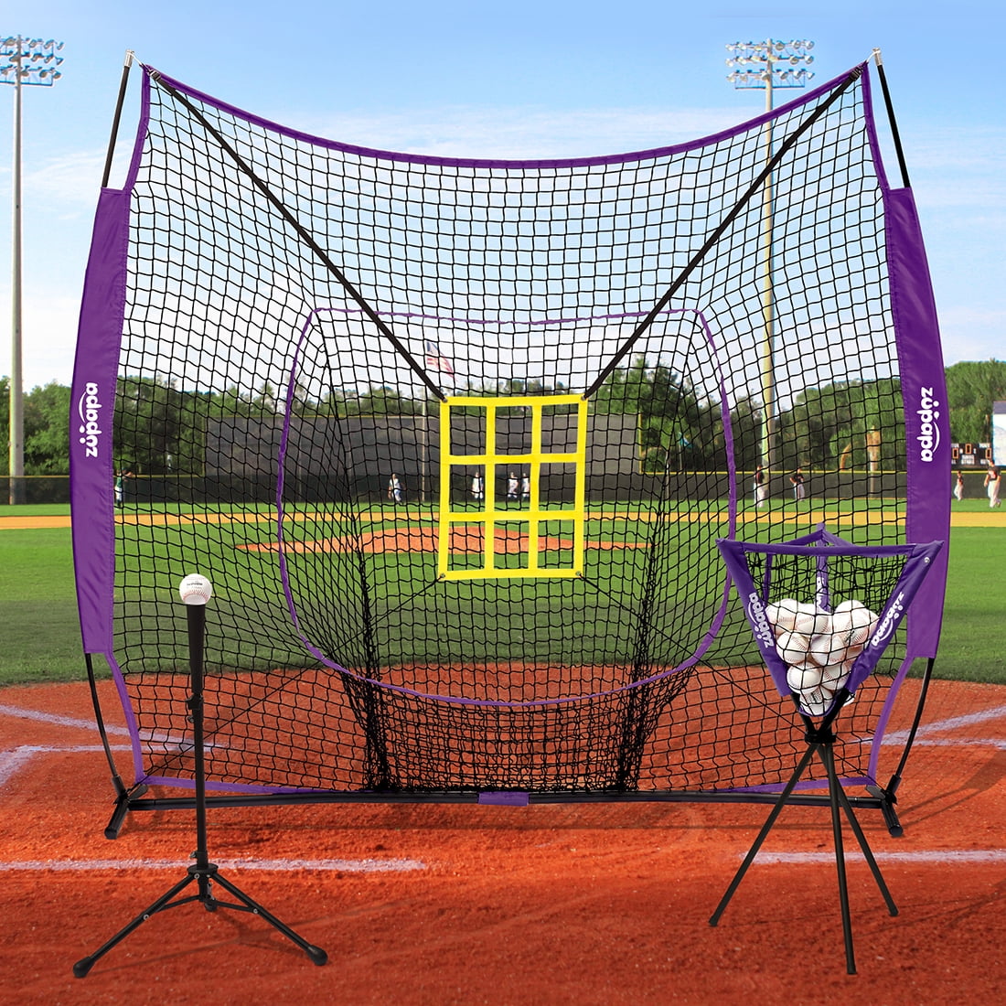 Come practice more with Zupapa. Wide strike zone target which improves your baseball performance. Well constructed with durable net and steel tube to backstop intense battings and not tip. Steel interlocking base with fiberglass upper poles for quick setup/breakdown. Reinforced top and bottom nylon loops and heavy-duty hook and loop closures. Breaks down in seconds and can be packed into a Zupapa portable case anywhere. You will love to see how thrilled your child will be with how much he/she imp you can use the hitting net at home, at the field, in your backyard, garage or at the parkin the open field when there is no local ball field, waste less time chasing balls.