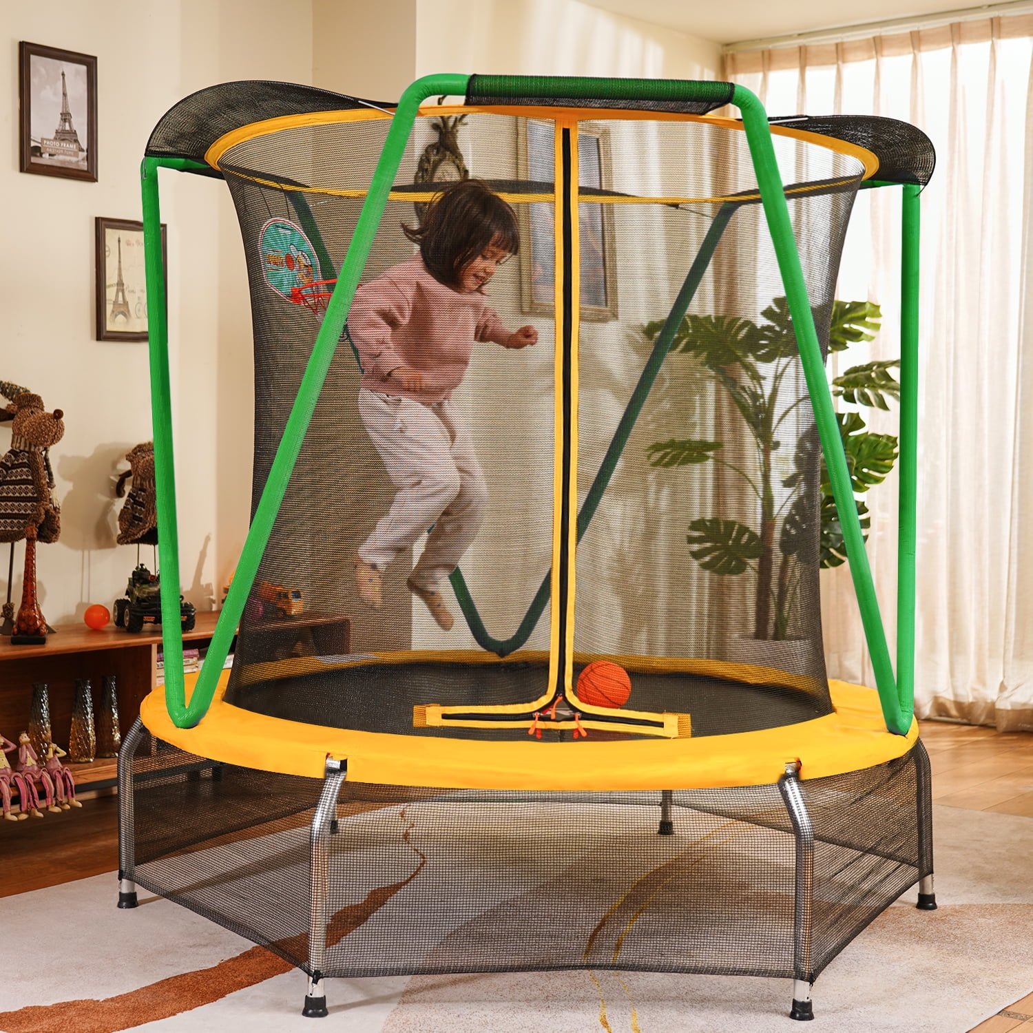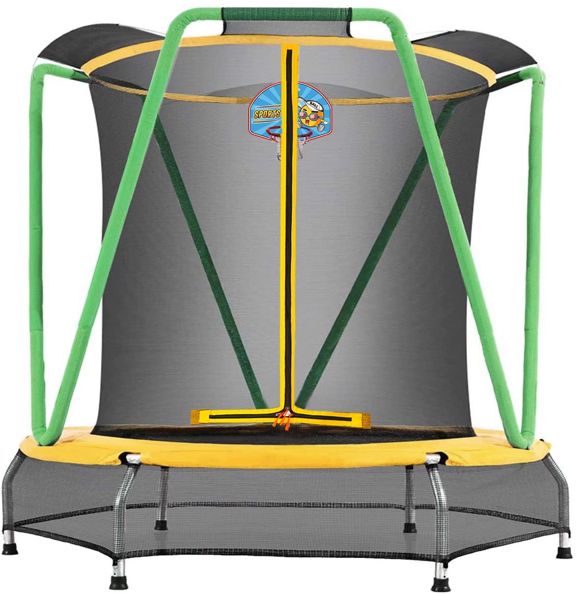 Zupapa Kids Trampoline with Enclosure Net Basketball Hoop, Toddlers Mini Small Trampolines for Indoor Outdoor for Children Baby Age 2-8